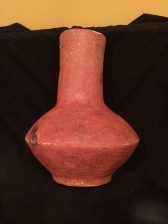 Mississippian Nodena Phase Carinated Water Bottle, Old Town Red. One Piece was broken out of the rim and re-glued. NO Restoration is on this bottle. It was found 11-12-1962 on the Parkin Site, a 17-acre Native American village located on the St. Francis River in Arkansas. It was occupied as early as A.D. 1000 until at least 1550. Tom Frainey collection.
