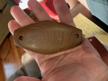 Second Phase Reel Bannerstone found in Calhoun County Mississippi in a sweet potato field. Easily a Grade 9.5. The material is a mottled Claystone.