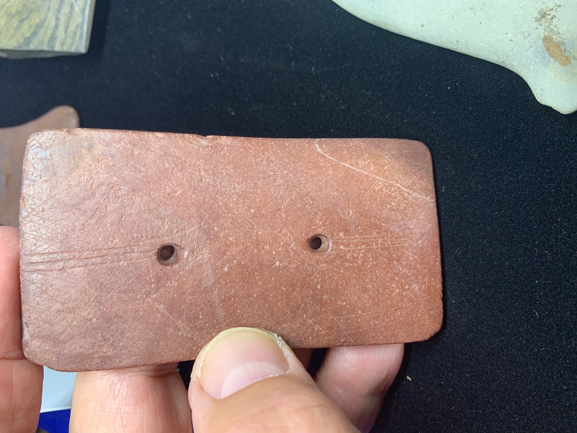 check out these Gorgets and Bannerstones I sent to Dennis Bushey to be repaired. This is the "Before" pictures in the padded case and all the "after" pictures after Dennis repaired them.