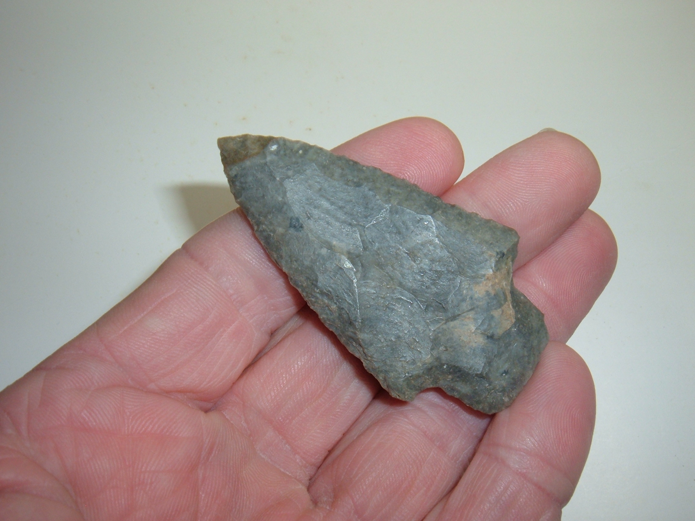 HERE'S A SUPER KILLER STEMMED ARCHAIC POINT RIGHT OUT OF OUR PERSONAL COLLECTIONS! COMES WITH EXCEPTIONAL PROVENANCE FROM A VERY WELL KNOWN OLD TIME COLLECTOR-EX.ELMER GRIMM THIS RELIC WAS FOUND IN COSHOCTON CO.OHIO AND IS 2 9/16" COMES WITH THE DATA CARD SHOWN RIGHT OUT OF THE FAMOUS ELMER GRIMM COLLECTION. MATERIAL IS COSHOCTON GRAY FLINT,AWSOME FLAKING, A FRUE KILLER!