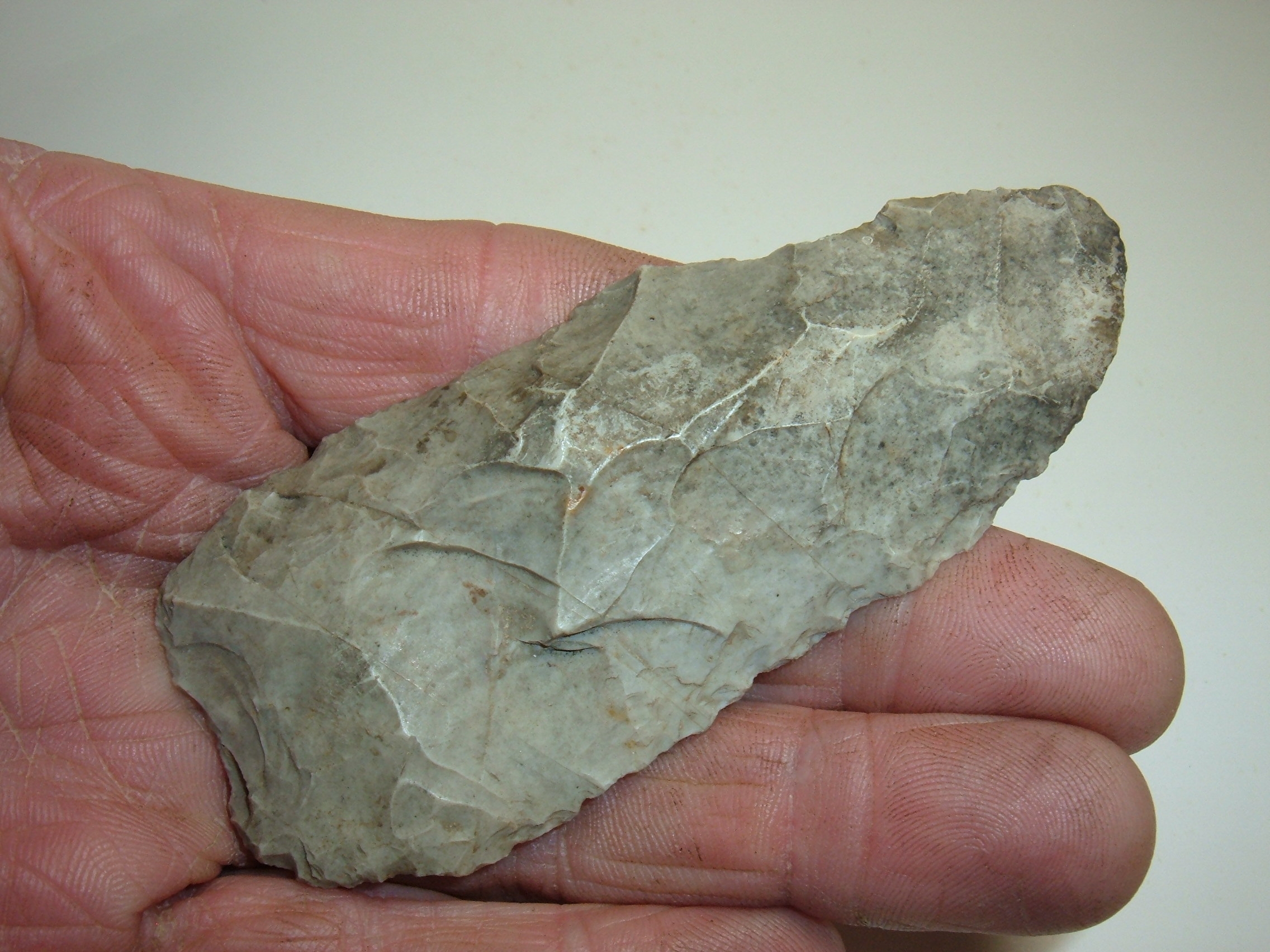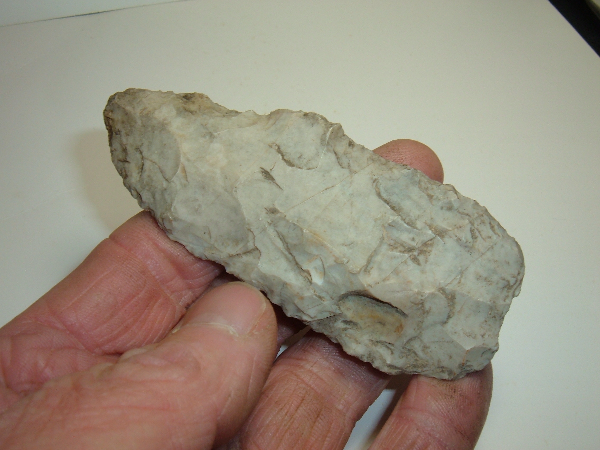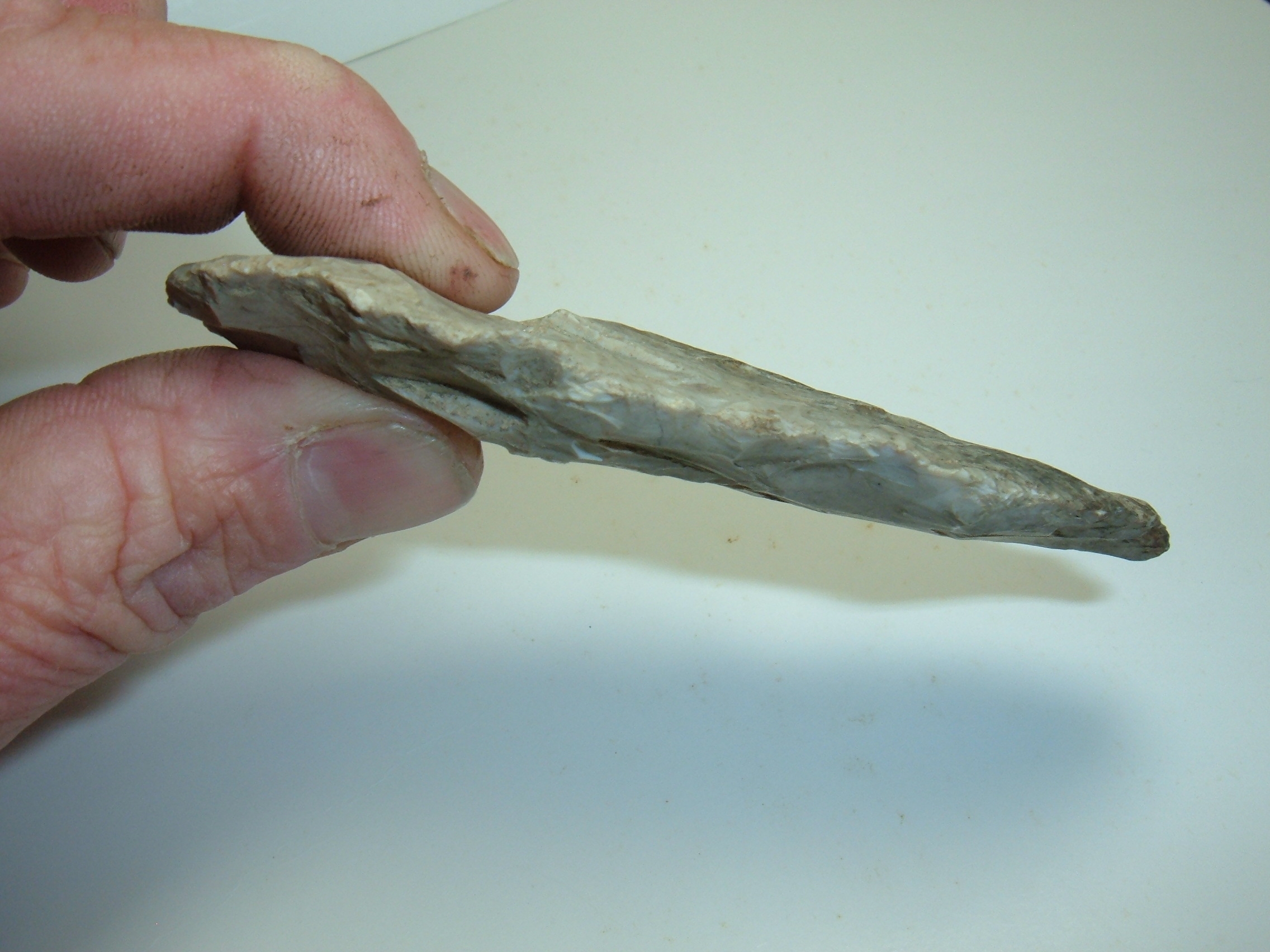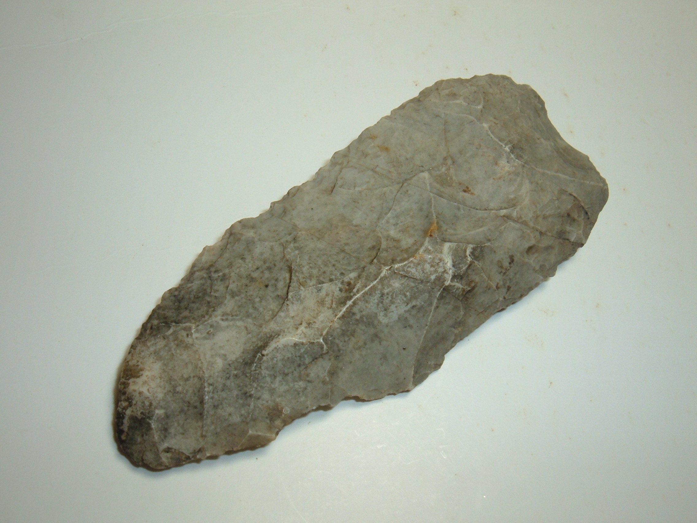 FROM OUR COLLECTIONS INS THIS BIG SRCHAIC KNIFE,3 11/16" FROM LICKING OR MUSKINGUM CO. AND MATERIAL IS FLINT RIDGE FLINT. THIS RELIC CAME OUT OF A BOB CONVERSE AUCTION AND IS EX JON & JEFF ROTH.GREAT SIZE FOR A LOW PRICE!