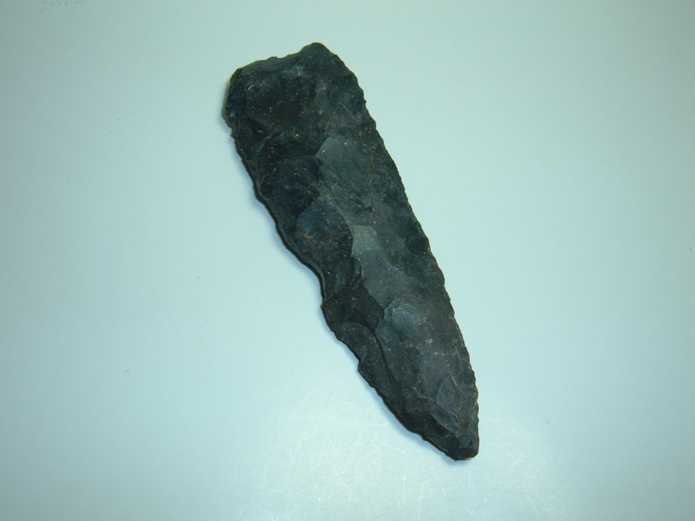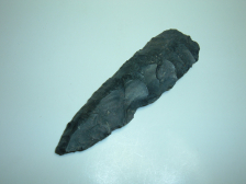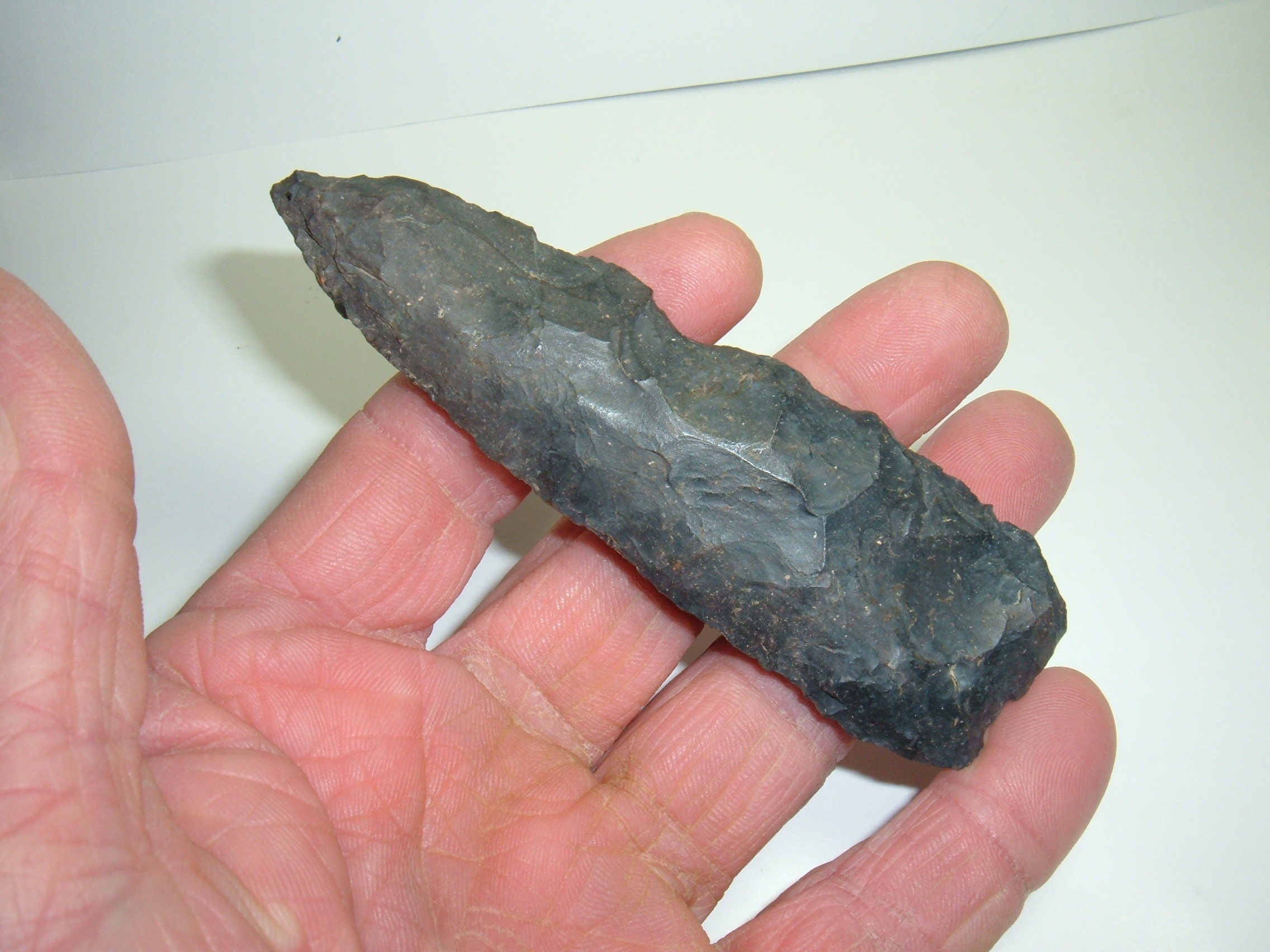LAST LISTING TODAY, HERE IS A HUGE DOVETAIL KNIFE PREFORM 4 1/8" WITH OUTSTANDING ARCHAIC FLAKING AND OVERALL SIZE! 4 1/8" FROM COSHOCTON CO. OHIO AND IS EX JIM BARKER WHO WAS ALSO LIKELY THE FINDER OF THIS LARGE RELIC! MATERIAL IS BLACK COSHOCTON FLINT AND A VERY COMMANDING PIECE IN THE HAND! A KILLER!