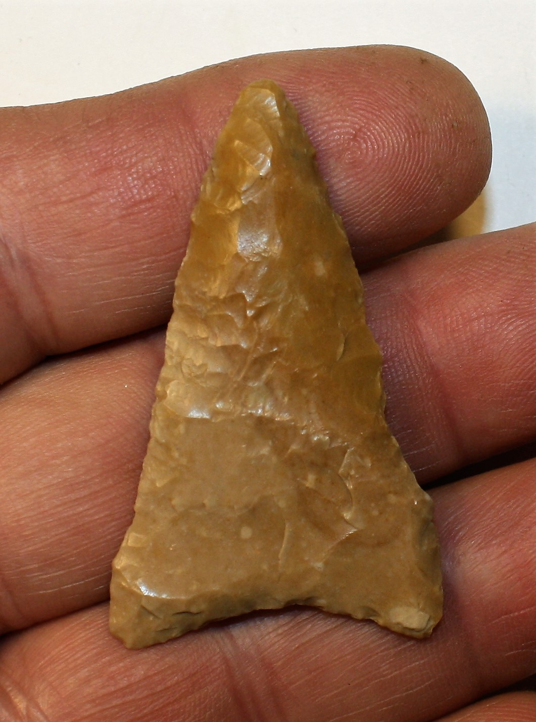 This artifact has taken on a pale yellow finish as well as a nice river sand polish.