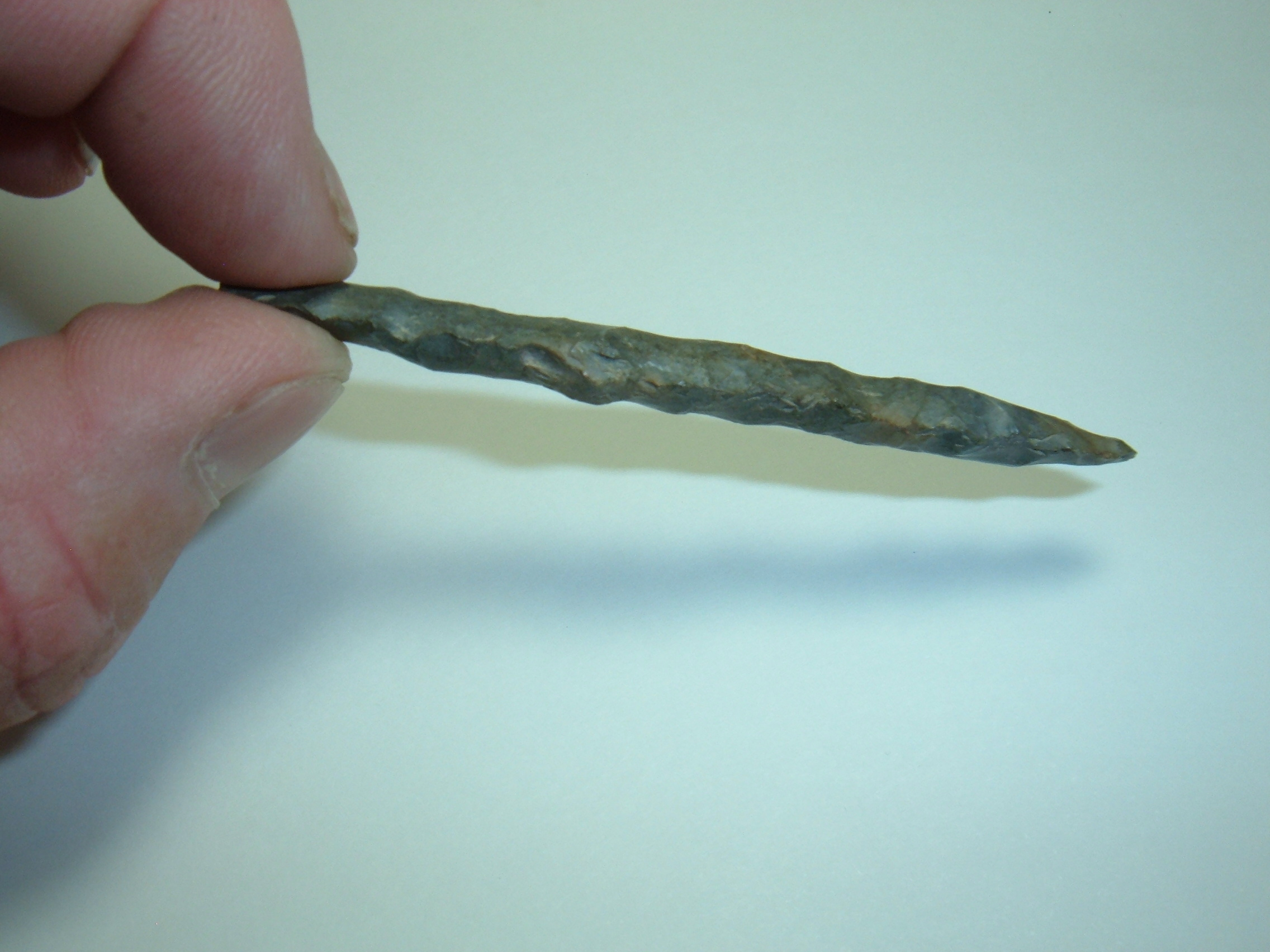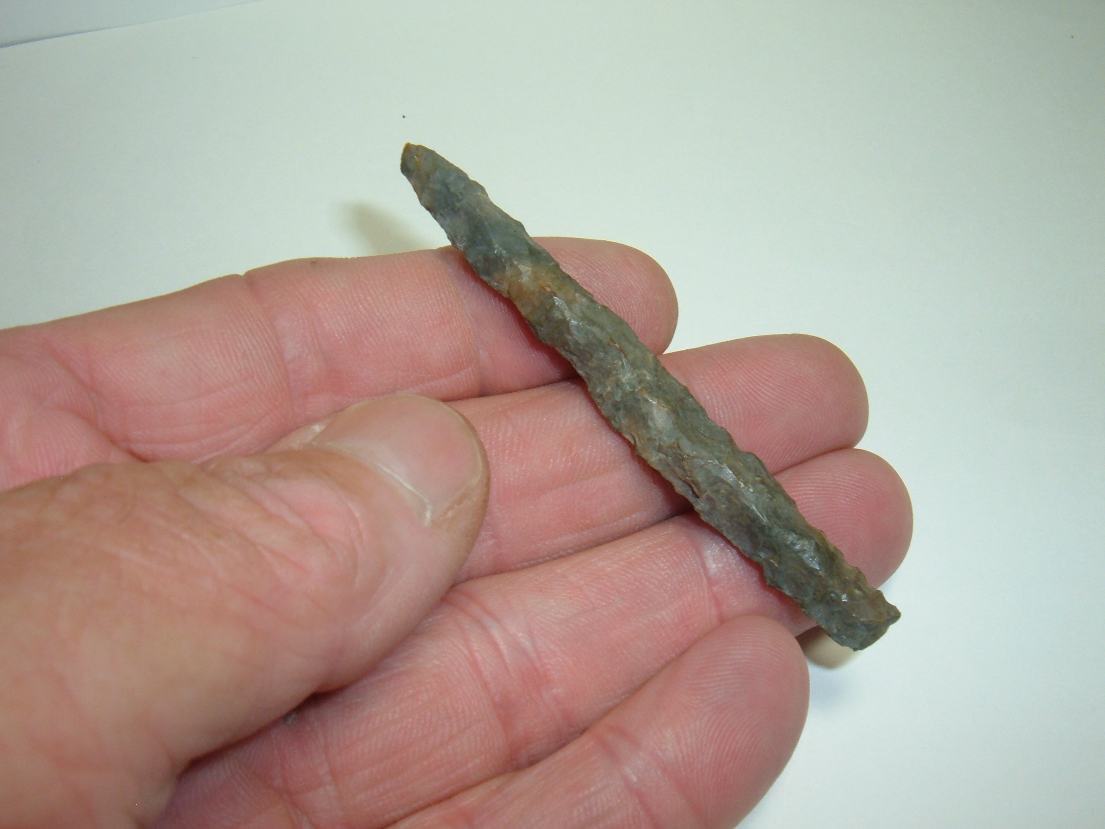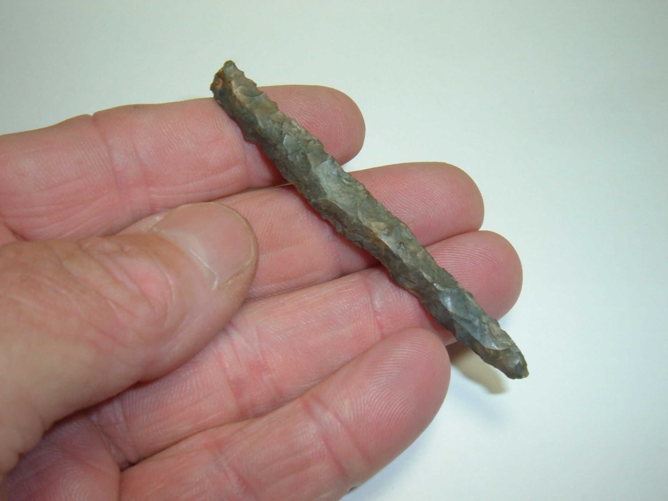OFFERED FROM OUR OWN PERSONAL COLLECTIONS IS THIS MAGNIFICENT HIGH GRADE ARCHAIC PENSIL DRILL 3" FROM FAIRFIELD CO. OHIO AND CAME OUT OF RICHARD COULTER'S COLLECTION ! rICHARD COULTER WAS KNOWN AS THE DRILL KING AND HE AMASSED A HUGE COLLECTION OF THEM, THIS BEING ONE! iT IS ALSO EX JIM BARKER AND EX TERRY YERIAN TWO NAMES WELL KNOWN TO OHIO COLLECTORS! MATERIAL IS COSHOCTON GRAY FLINT AND MADE EXTREMELY WELL,IN FACT ONE OF THE BEST WE HAVE SEEN!