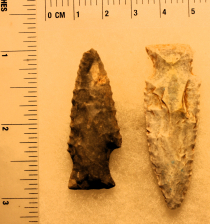 This arrowhead is about 1 1/4 in. long and 5/8 in. wide. The workmanship is keen with only a barb tip missing. It is kept in a protective coin folder for safety on display.