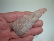 GREAT COLOR CHARACTERIZES THIS FINE ARCHAIC KNIFE, 3 5/8" FOUND IN LICKING CO.OHIO AND IS EX DAVE ELLIS!MADE OF RATHER UNCOMMON COLORED NETHERS FLINT RIDGE,THIS FINE EXAMPLE SHADES FROM PINK TO REDDISH AND HAS A PLEASING SHAPE TO IT! SUPER EXAMPLE OF THE ARCHAIC KNIFE!