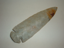 HERE IS A RATHER UNCOMMON POINT TYPE, THIS COLORFUL ASHTABULA 2 1/4" WAS FOUND NEAR THE GREAT BUFFALO"JUMP" OR RATHER BUFFALO RUN AT THE NECK OF JONATHAN CREEK ,PERRY CO.OHIO. MATERIAL IS BEAUTIFUL CREEK STAINED FLINT RIDGE FLINT IN A VERY ORANGE COLORATION!ASHTABULA ARE NOT OFFERED VERY OFTEN AND THIS ONE COMES WITH SOME INTERESTING LOCALITY DATA!