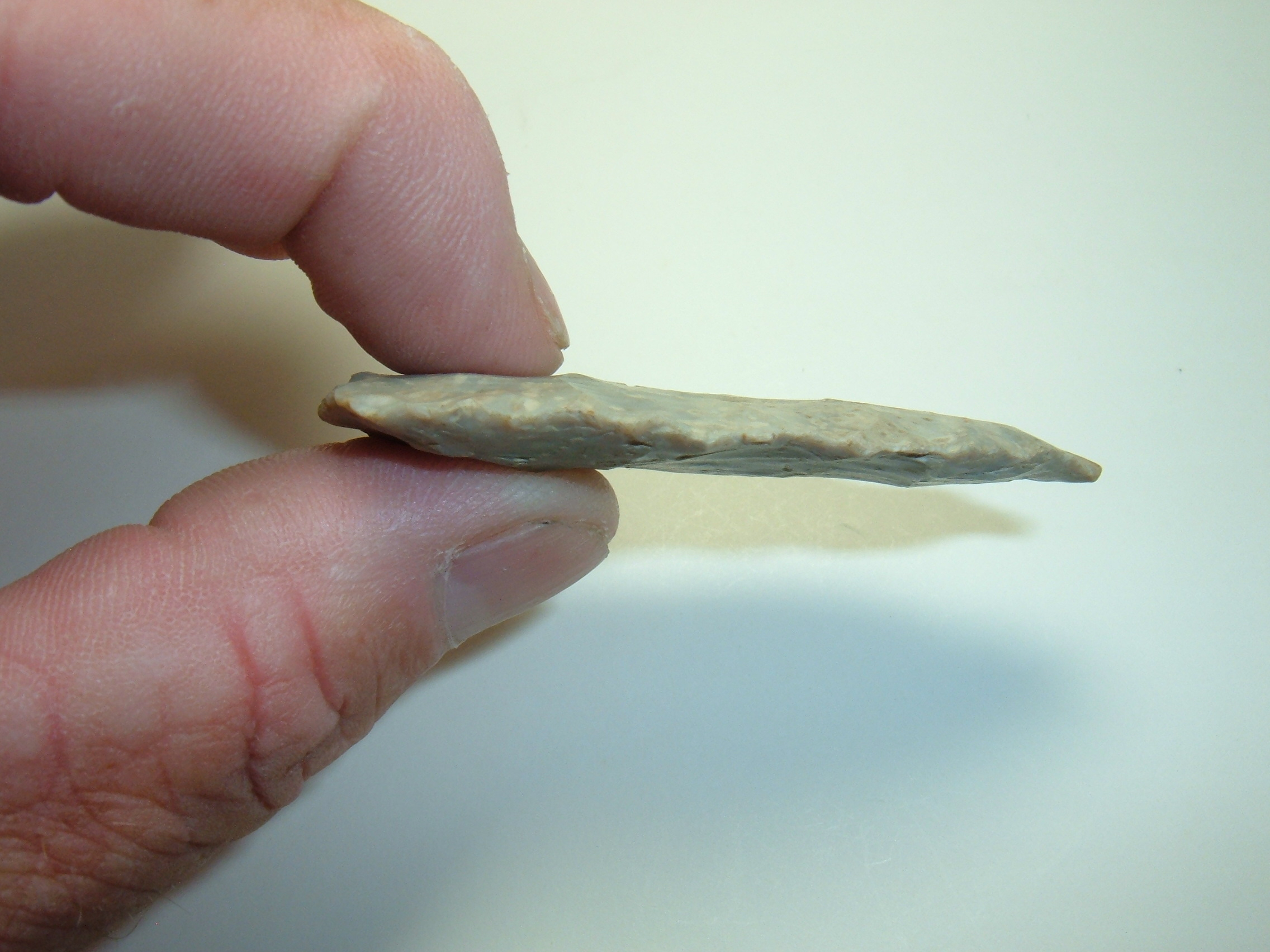 UP FOR INSPECTION IS THE FIRST OF THREE HOPEWELL CACHE BLADES ,THIS ONE 2 7/8" FROM MARION CO. OHIO AND IS MADE OF VERY NICE HIGHLY SOUGHT AFTER FLINT RIDGE FLINT!VERY SYMMETRICAL AND THIN AND EXCELLENT REPRESENTATIVE OF THE TYPE!