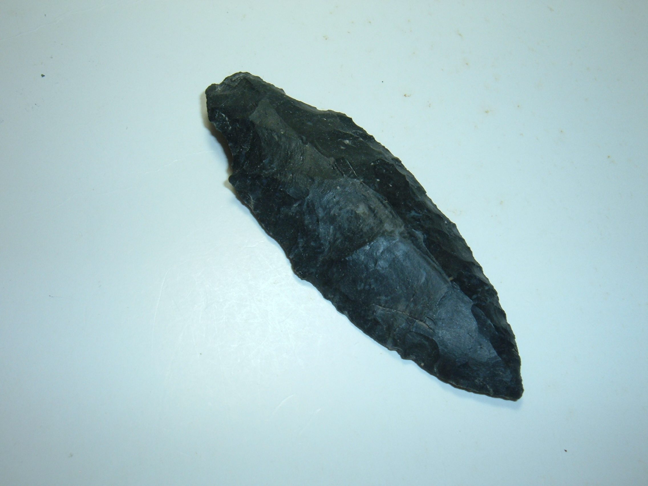 HERE'S A VERY FINE RELIC, A EARLY ADENA LARGE AT 3 1/4" FROM HARDIN CO.OHIO AND IS MADE OF FINE HIGHLY COLLECTABLE JET BLACK COSHOCTON FLINT EVEN NICER IN THAT IT IS UNIFACE ON ONE SIDE! UNDENIABLY WELL MADE AND A PERFECT ADDITION TO YOUR OHIO ADENA COLLECTION!