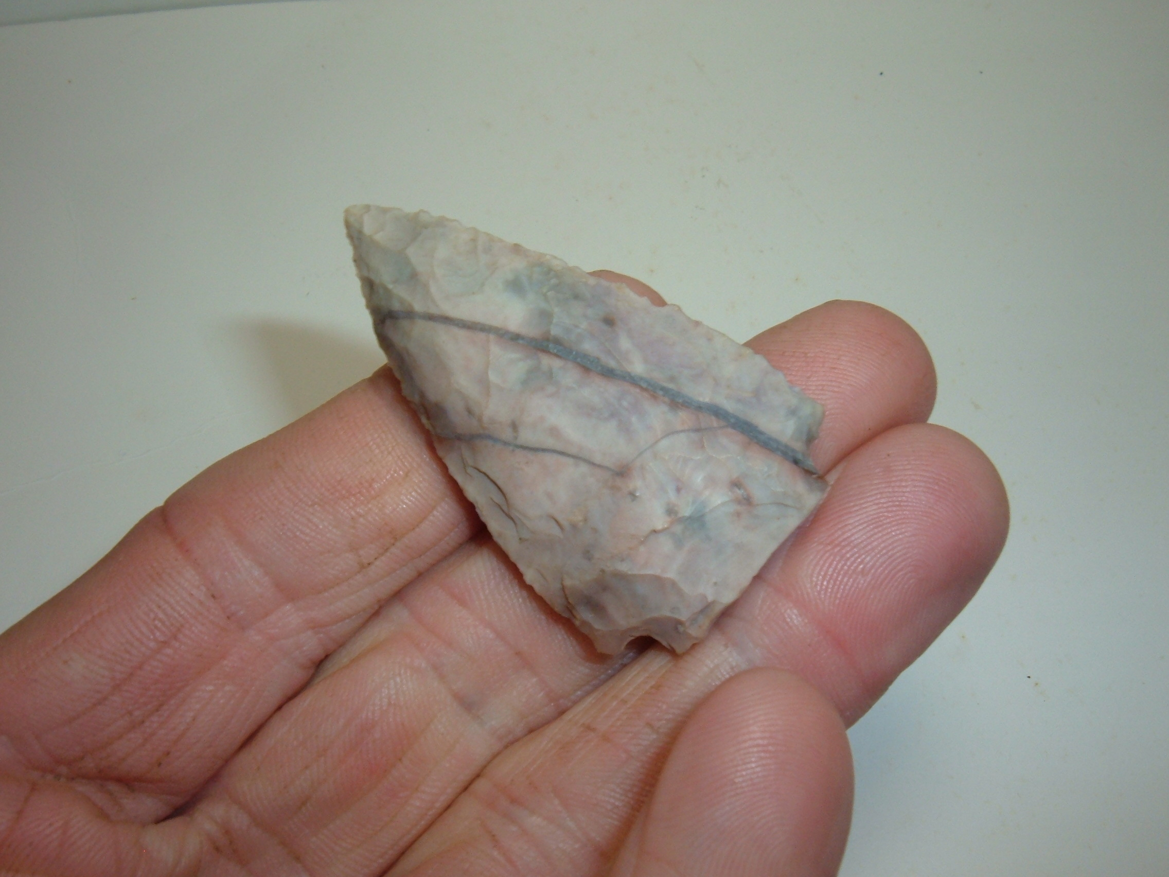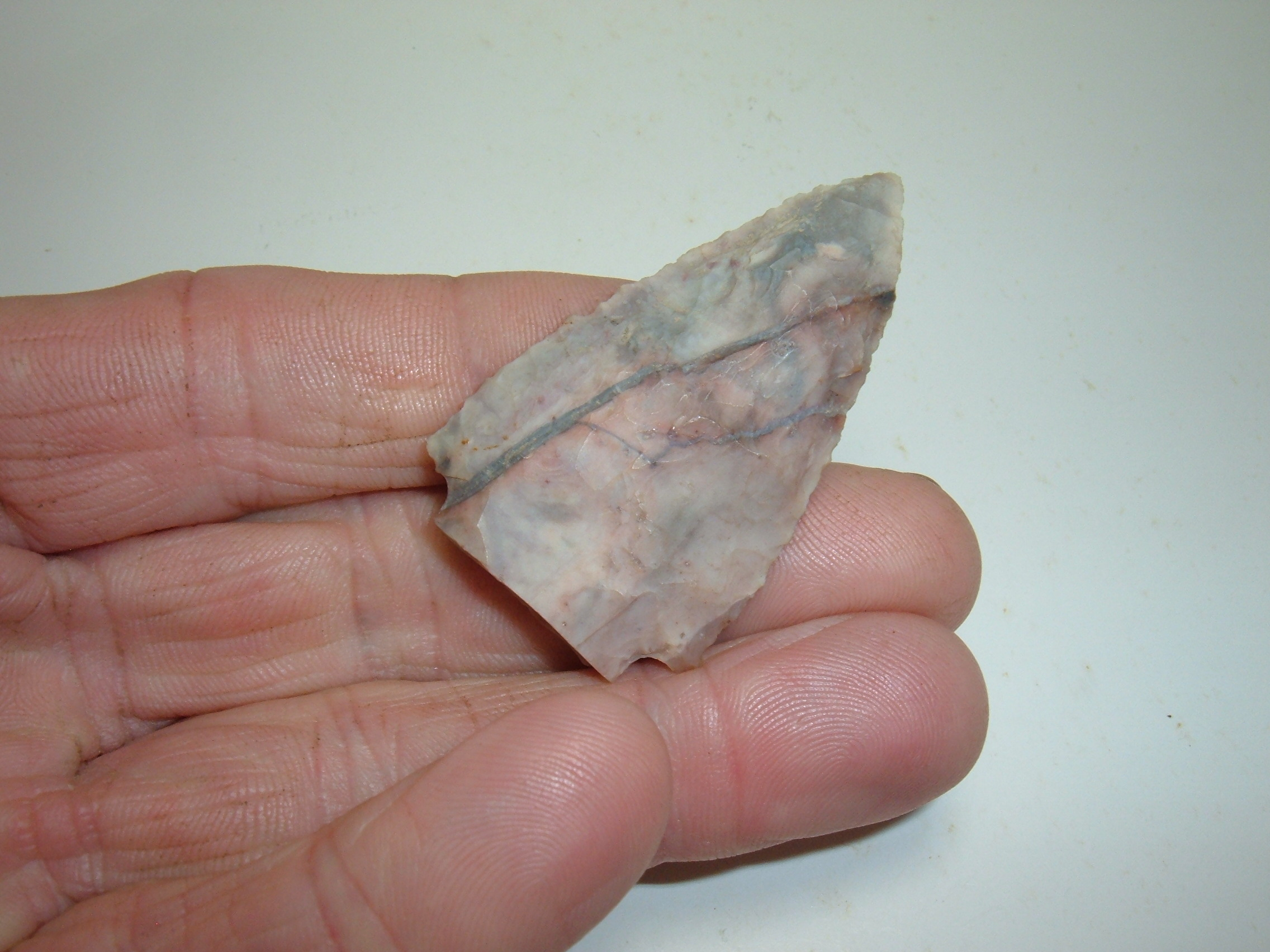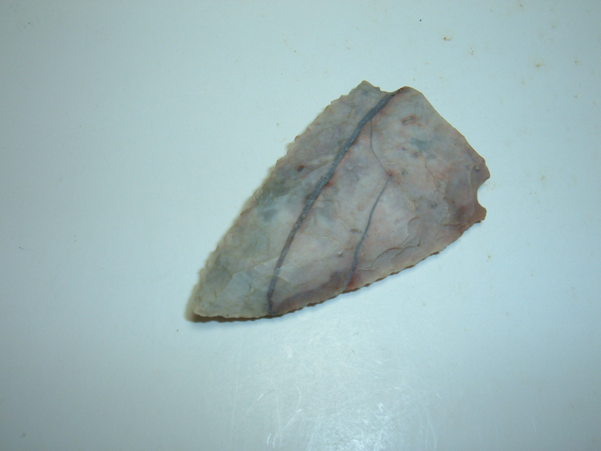 HERE WE PRESENT A REALLYM INCREDIBLE FRACTURED BASE POINT 2" FROM RICHLAND CO.OHIO AND IS EX CARL DUNN! INCREDIBLE EXOTIC COLORED FLINT RIDGE WITH PINKS & REDS AND BEAUTIFUL VEINS... WE WILL LET THE PICTURES SPEAK FOR THEMSELVES AS ONE PICTURE IS WORTH 1000 WORDS AS THEY SAY!ABSOLUTELY STUNNING!!!