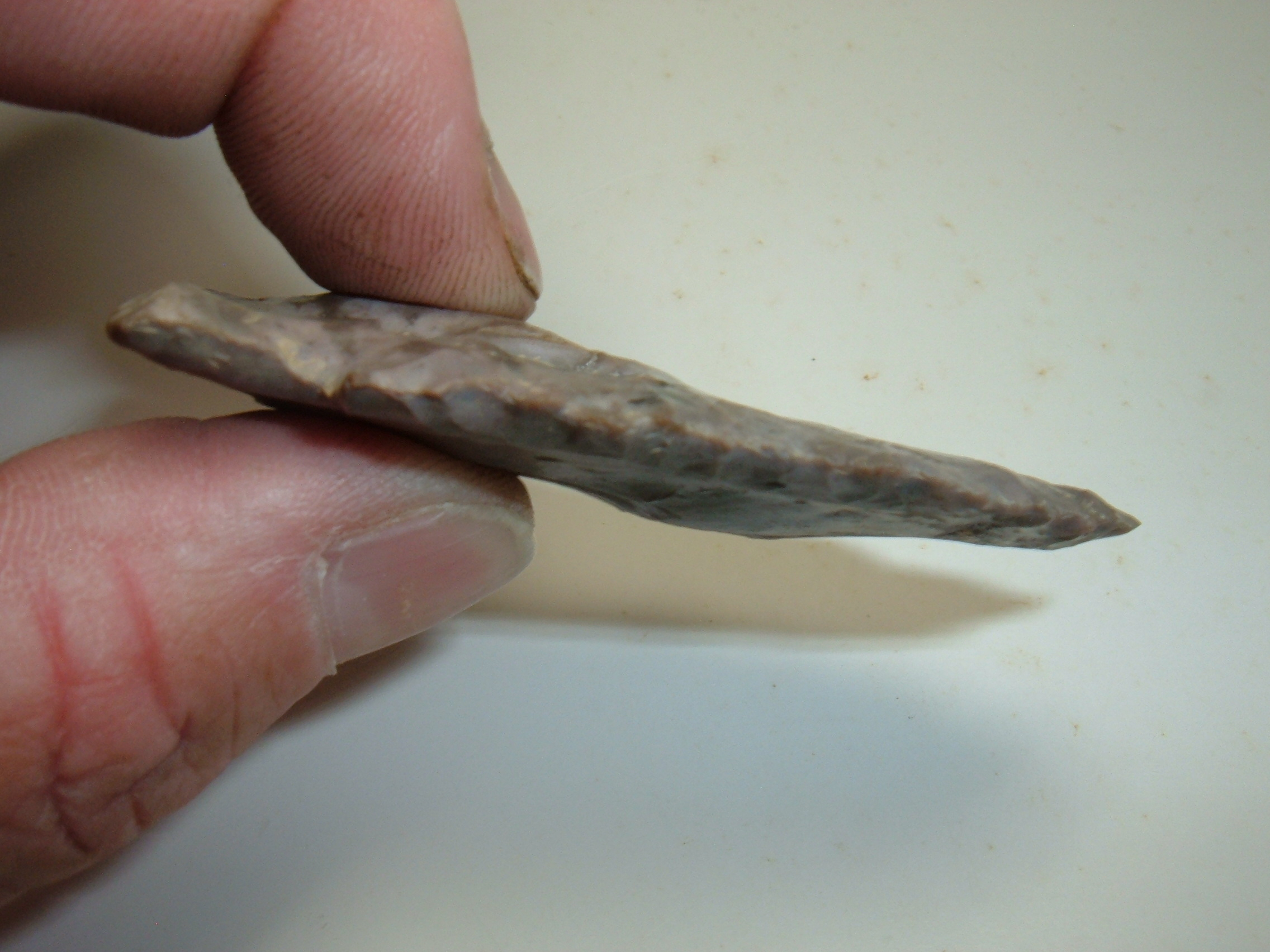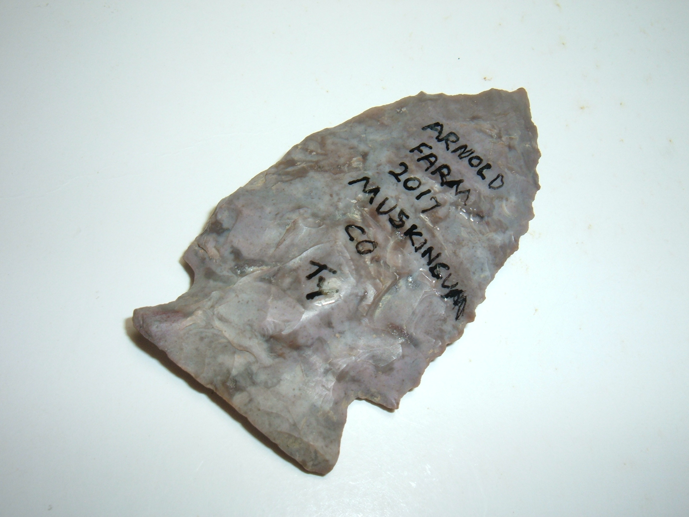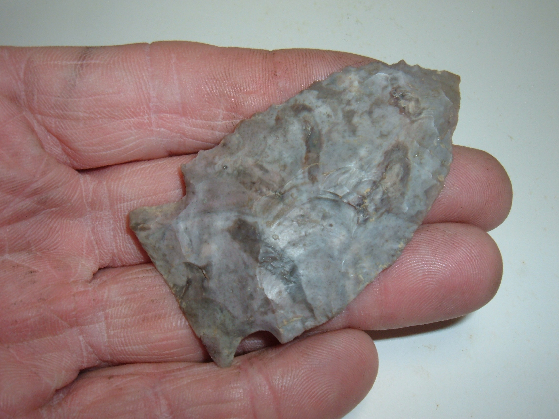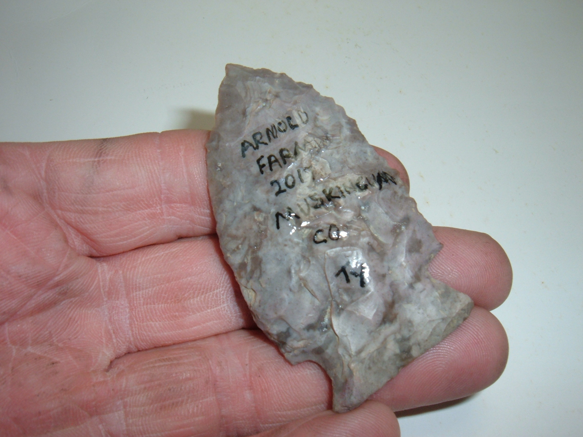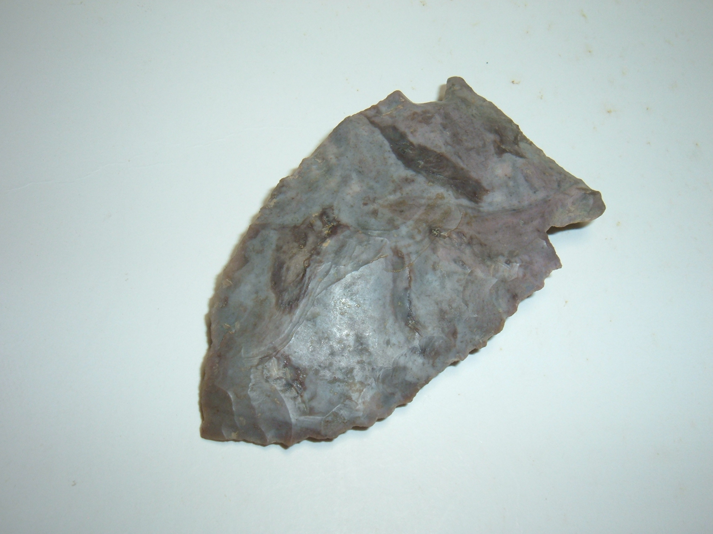 OFFERED HERE IS A FANTASTIC ARCHAIC CORNER NOTCH,2 3/4" FOUND BY ARNOLD ON HIS FARM IN MUSKINGUM CO.OHIO NEAR HIRST ROAD! EX TERRY YERIAN , A NAME LONG ASSOCIATED WITH QUALITY AUTHENTIC RELICS FROM OHIO! MATERIAL IS EXOTIC PURPLE FLINT RIDGE . KILLER IN EVERY WAY, UNBEATABLE HIGH GRADE CORNER NOTCH!