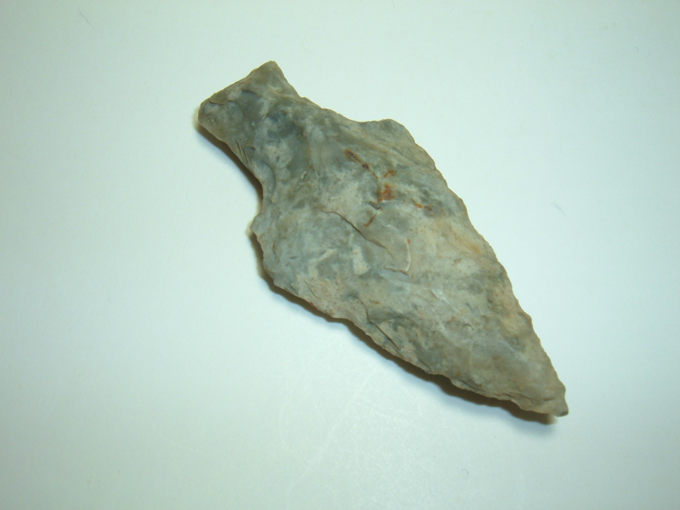 OFFERED HERE FROM OUR PERSONAL COLLECTIONS IS THIS FINE PALEO KEISER FROM COSHOCTON CO.OHIO AND NICE SIZE AT 2 5/8" MATERIAL IS COSHOCTON GRAY FLINT,SUPER NICE EXAMPLE OF THIS RARELY OFFERED POINT TYPE!