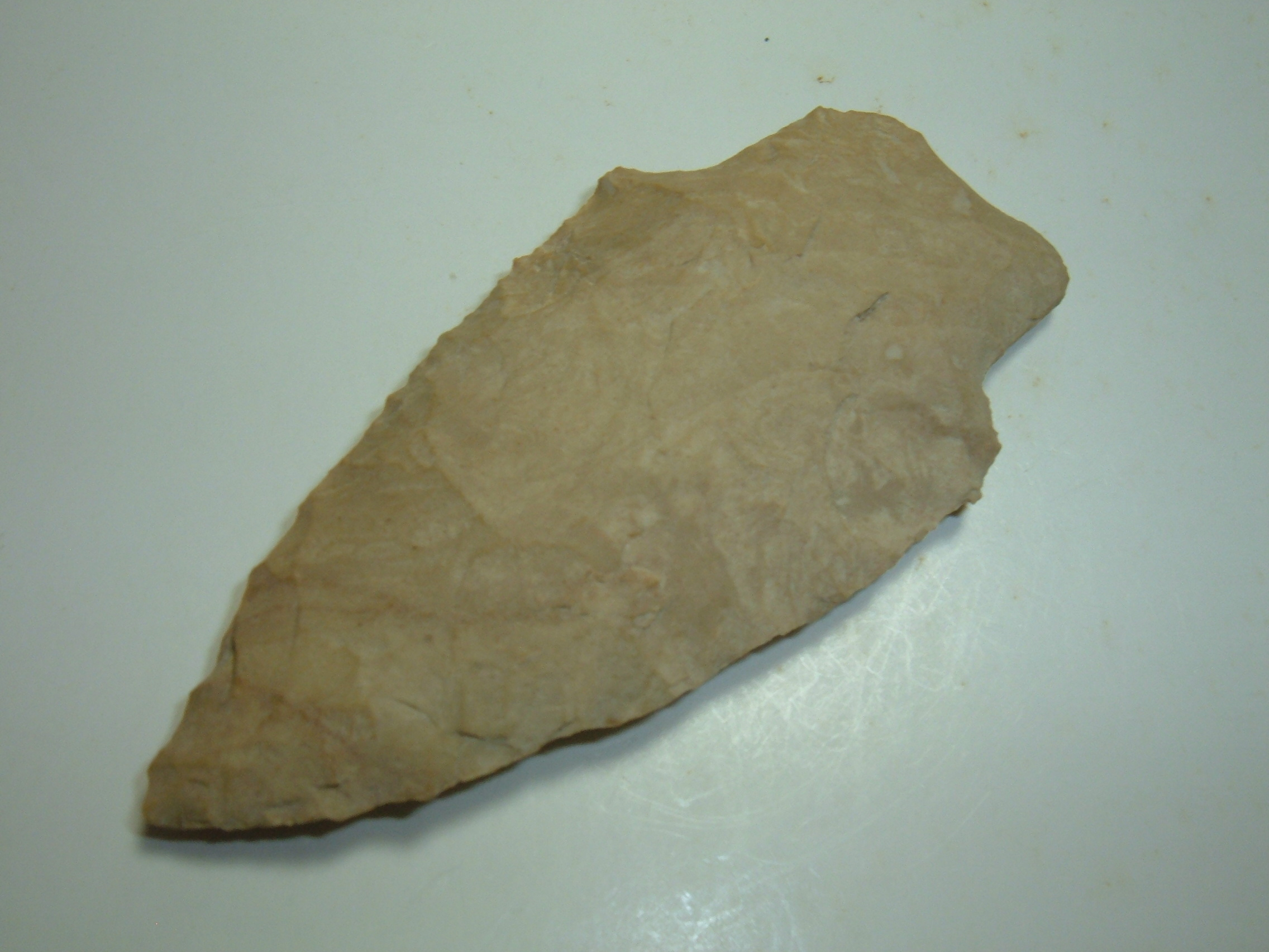 HERE IS A GREAT DEAL ON A FINE PALEO RELIC,THIS BEAUTIFUL PALEO STEMMED LANCE WAS FOUND IN COSHOCTON CO.OHIO AND IS JUST SHORT OF 3"HAS VERY NICE SIZE AND FLAKING AND IS MADE FROM KAOLIN CHERT A RATHER UNUSUAL MATERIAL TO BE FOUND IN OHIO!SUPER RELIC IN EVERY WASY!