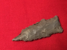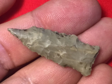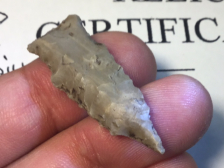 Often called a "Button Hook Tip", this Darl was recovered in Uvalde County. It is diminutive but well made with steep right hand bevels. It has a Rogers COA and I have the shipping.