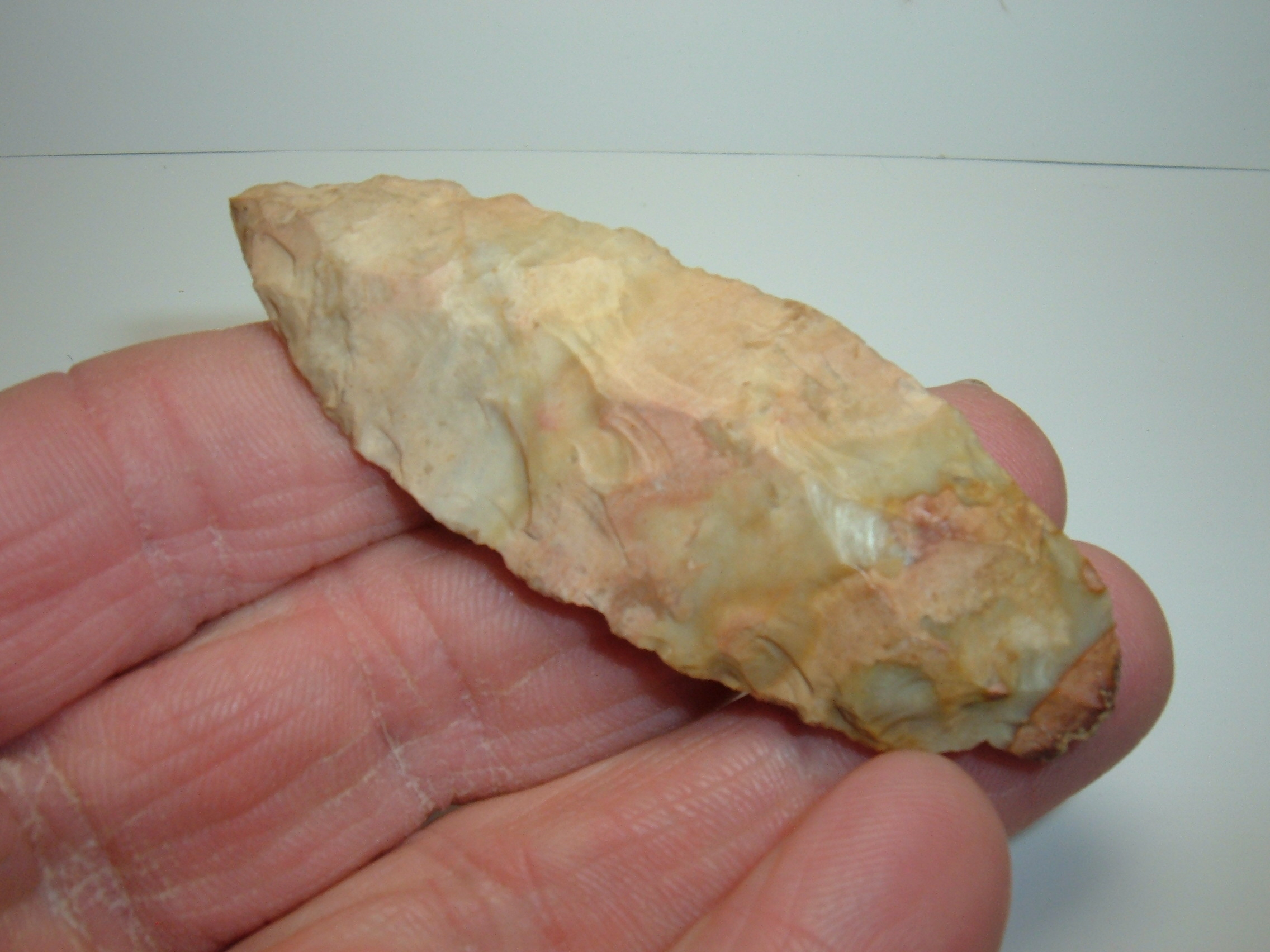 TAKE A LOOK AT THESE BEAUTIFUL COLORS ON THIS EXCEPTIONAL EARLY ADENA! FOUND IN KNOX CO.OHIO THIS FINE 3" RELIC IS MADE FROM HIGHLY SOUGHT AFTER PLUM RUN FLINT ,IN THIS CASE DISPLAYS BEAUTIFUL GREENS, TANS AND ORANGE PINKS! OUTSTANDING COLOR ON A VERY OUTSTANDING ADENA!!!