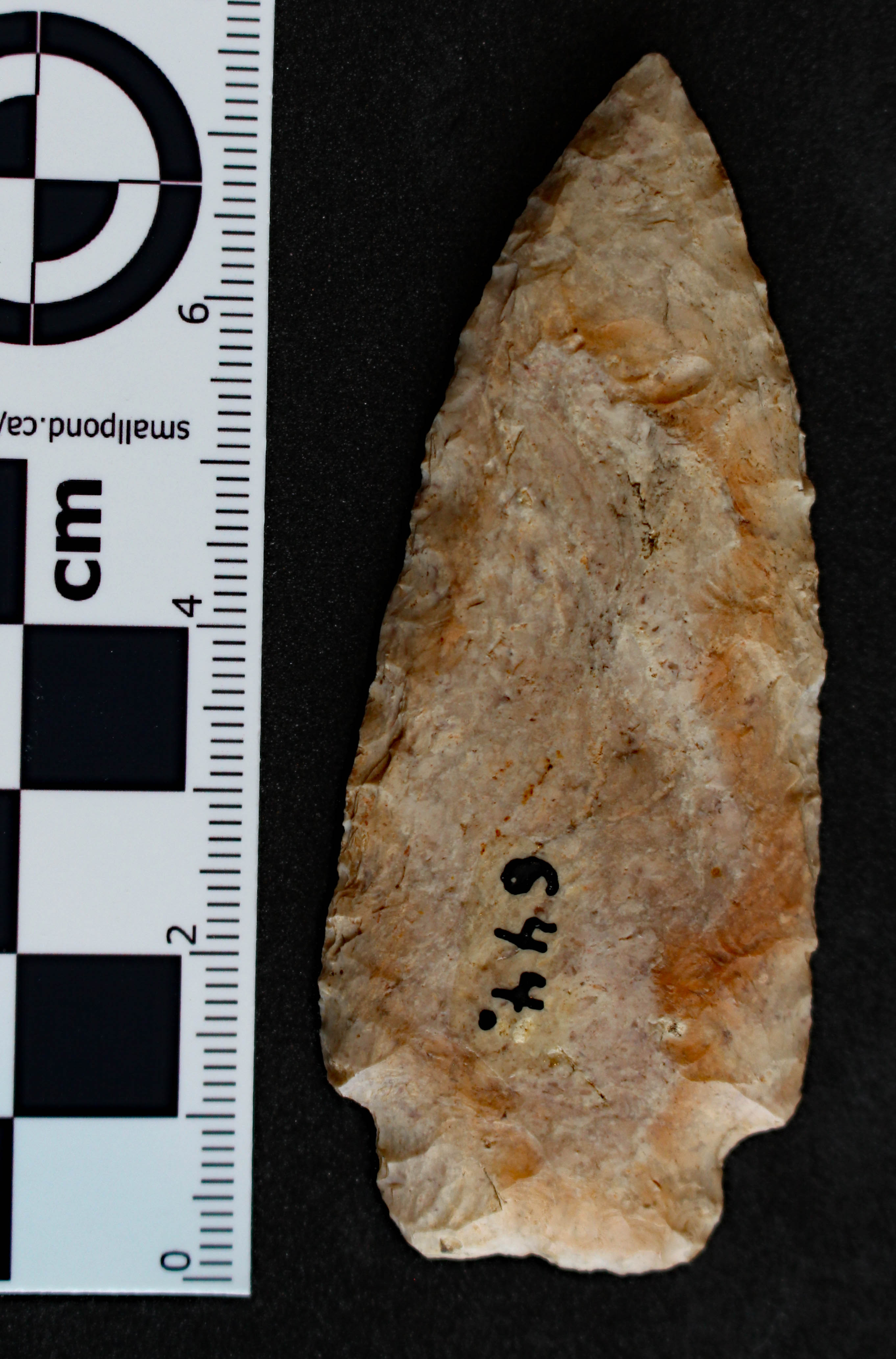 This is a very nice example of the type. Square Stemmed Point Pike Co Ill. Ex Robert Hruska This point displays well with good size 2 and 7/8" long.Very nice patina. These points are middle archaic 5,000 to 1,000 BC. Guaranteed Authentic. $5.00 Ground Advantage mail .