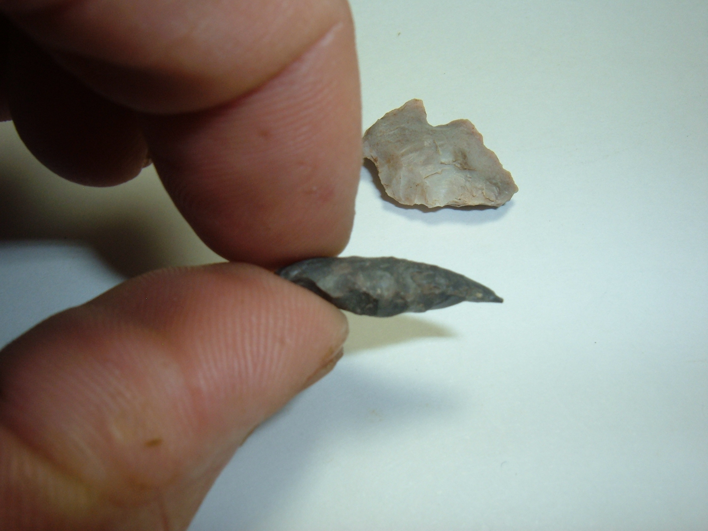 OFFERED HERE ARE TWO VERY NICE BIRD POINTS WHICH CAME OUT OF THE FAMOUS CHARLIE MCKEAN COLLECTION! MEASURING 3/4" & 13/16" THESE ARE TRUE BIRDPOINTS NAD CAME FROM GALLIA CO.OHIO. THE MATERIAL IS FLINT RIDGE FLINT AND COSHOCTON FLINT.SUPER LITTLE DUO!