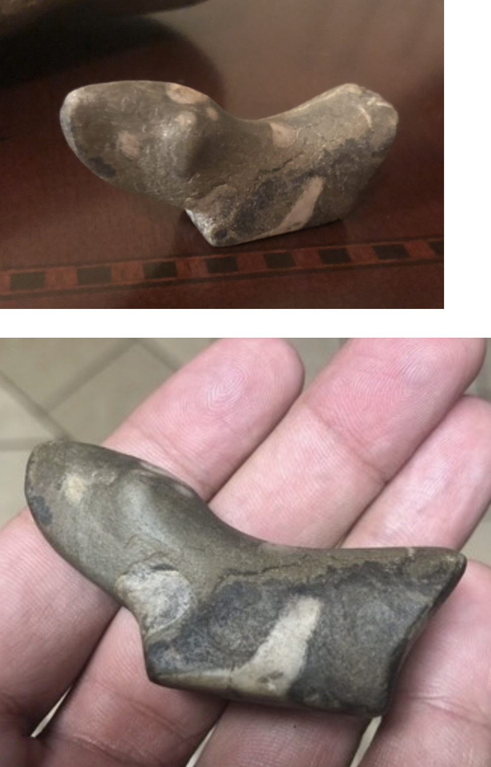 Noded Eye Birdstone made from a complete 2 5/8” fossil (Bryozoan) found in Calumet County Wisconsin in 1942. Paul Frey coa