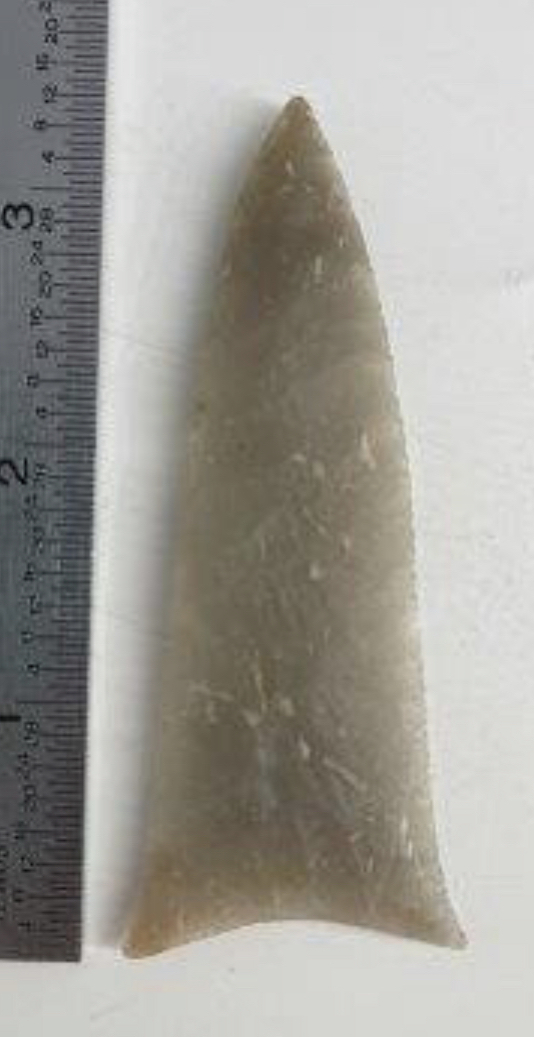 Gem Translucent Gray Novaculite super rare Caddo blade found in a field near Mineral Springs Arkansas. G10 example. Superior Quality point. Purchased from Caddo Trading Company in 1987. Ex Larry Shaver