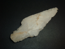 OFFERED HERE IS A HUGE EXAMPLE OF AN EARLY ADENA SPEAR, 4 3/16"AND FOUND IN ALLEN CO.OHIO! BEAUTIFUL CREAM FLINT RIDGE AND A LOT OF POINT FOR THE PRICE! SLIGHT FLAKE AT THE TIP IS ANCIENT AND IN THE MAKING!