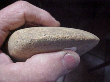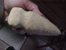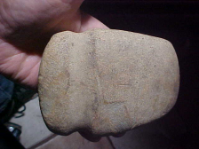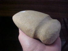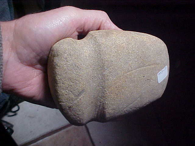 Shipping is $13.00 Priority Mail, absolutely real in every detail you could think of. The piece came from a Wabash and Edwards County, Illinois, collection. Material is a tight-grained granite--dense, measures 5&1/4" by just over 3&3/4", but 'trim' only 1&7/8" max thickness on the front ridge. The bit is worn, but intact. The pictures should show the Early Archaic Culture artifact to be a field find--those light scratches and scrapes are also part of its history. There is decent overall grinding, but I don't think you could extend that to say "polished"--the axe is smoother than you'd expect, though, a good in-hand feel. One small note--I see a shallower groove on the top of the axe, makes me wonder if the piece was made toward the latter part of the Early Archaic, more like it was transitioning from Early to Middle Archaic--more like 65--6700 BP, not &7500BP--the 'top' isn't quite flattened like the Mid Archaic axes, but you see indications of a style change. Nice piece. I welcome checks or M.O.s, but I do not use paypal--Roy A.