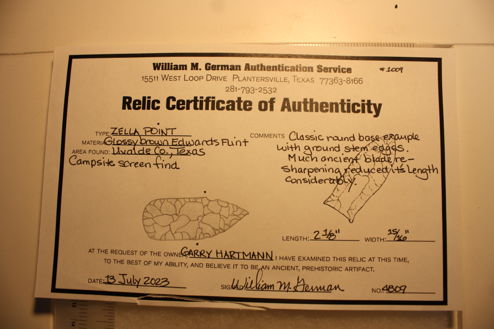 Although I originally listed this artifact as an Agate Basin, It came back from the authenticator as a Zella