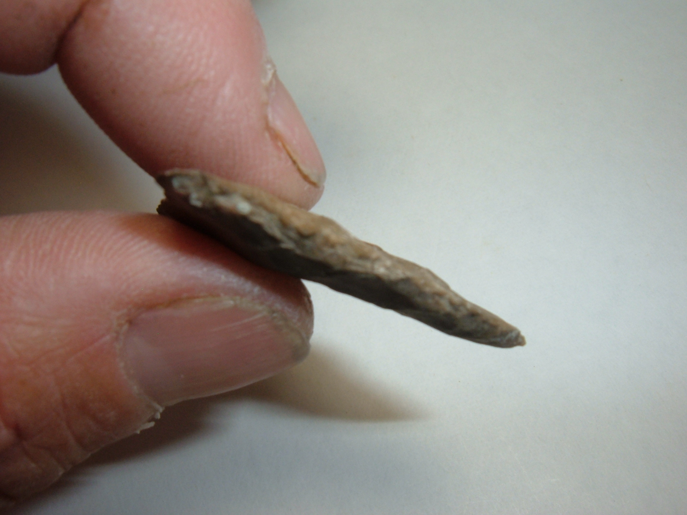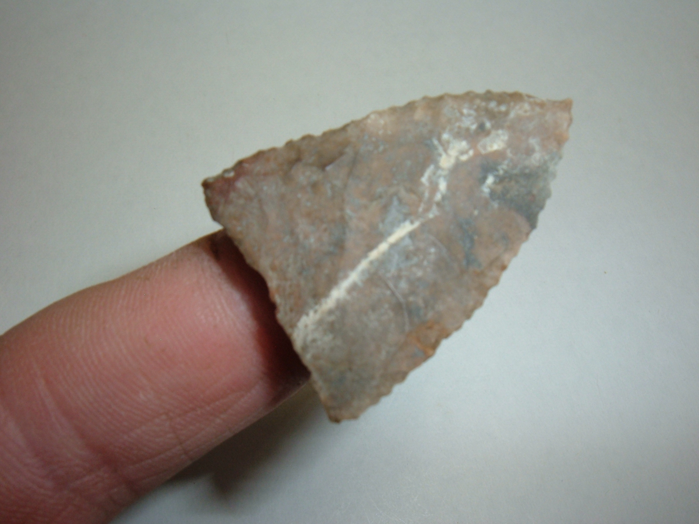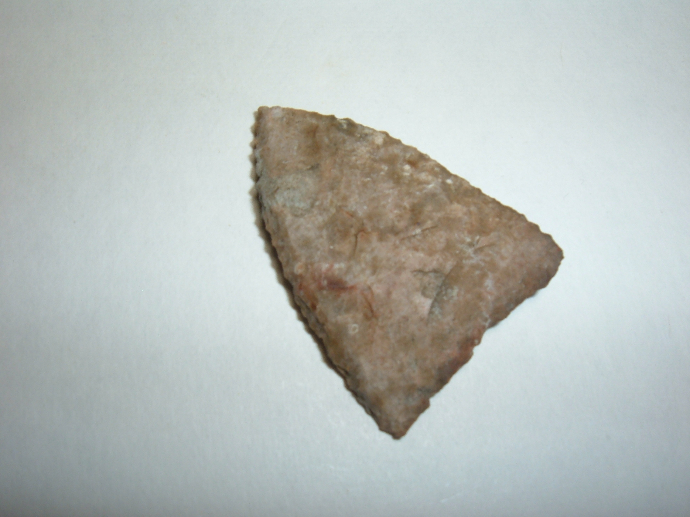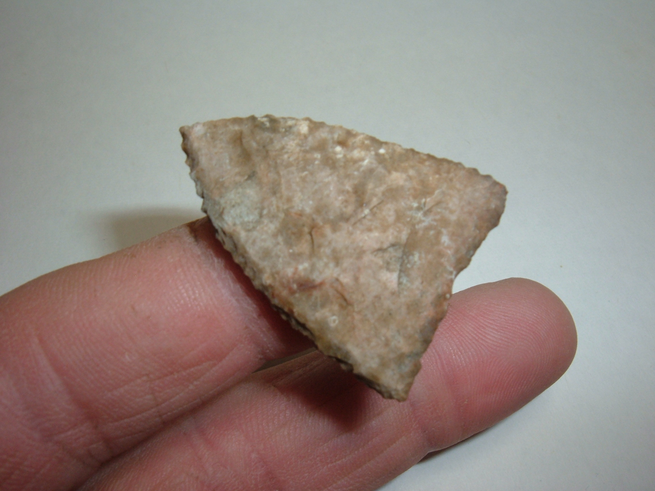 HERE WE PRESENT A STUNNING FORT ANCIENT TRIANGLE POINT FOUND IN WOOD CO.OHIO AND IS 1 7/16". EXTREMELY WELL MADE FROM ONE OF THE MANY LOCAL CHERTS AVAILABLE TO THE FORT ANCIENT, PERHAPS DELAWARE CHERT. EXCELLENT EXAMPLE IN EVERY WAY!