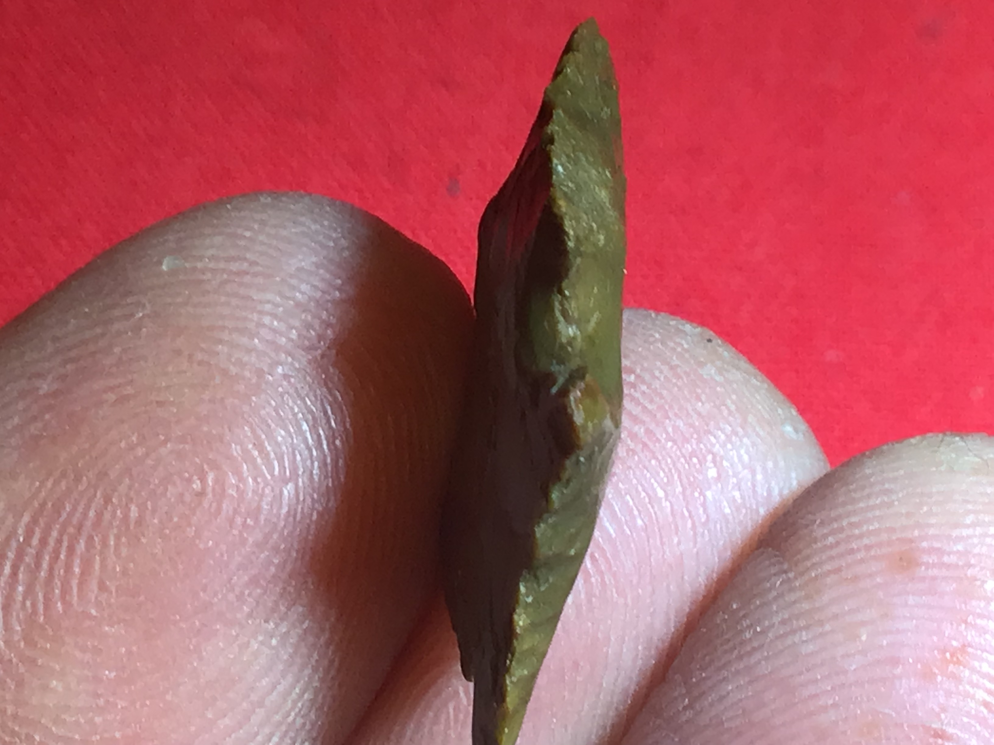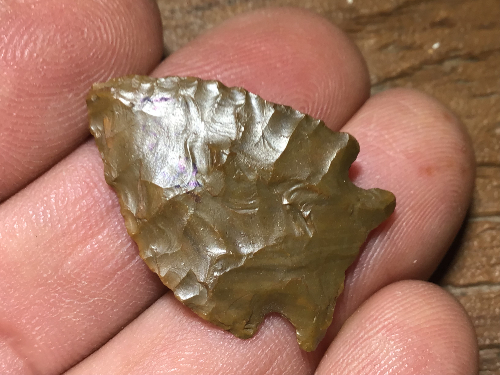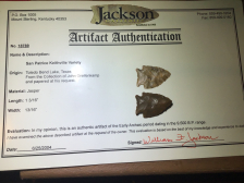 Colorful material for this Jasper Keithville from Toledo Bend area, Texas side. The edges show use wear and the base is ground and thinned. I have the shipping and it comes with a Jackson COA.
