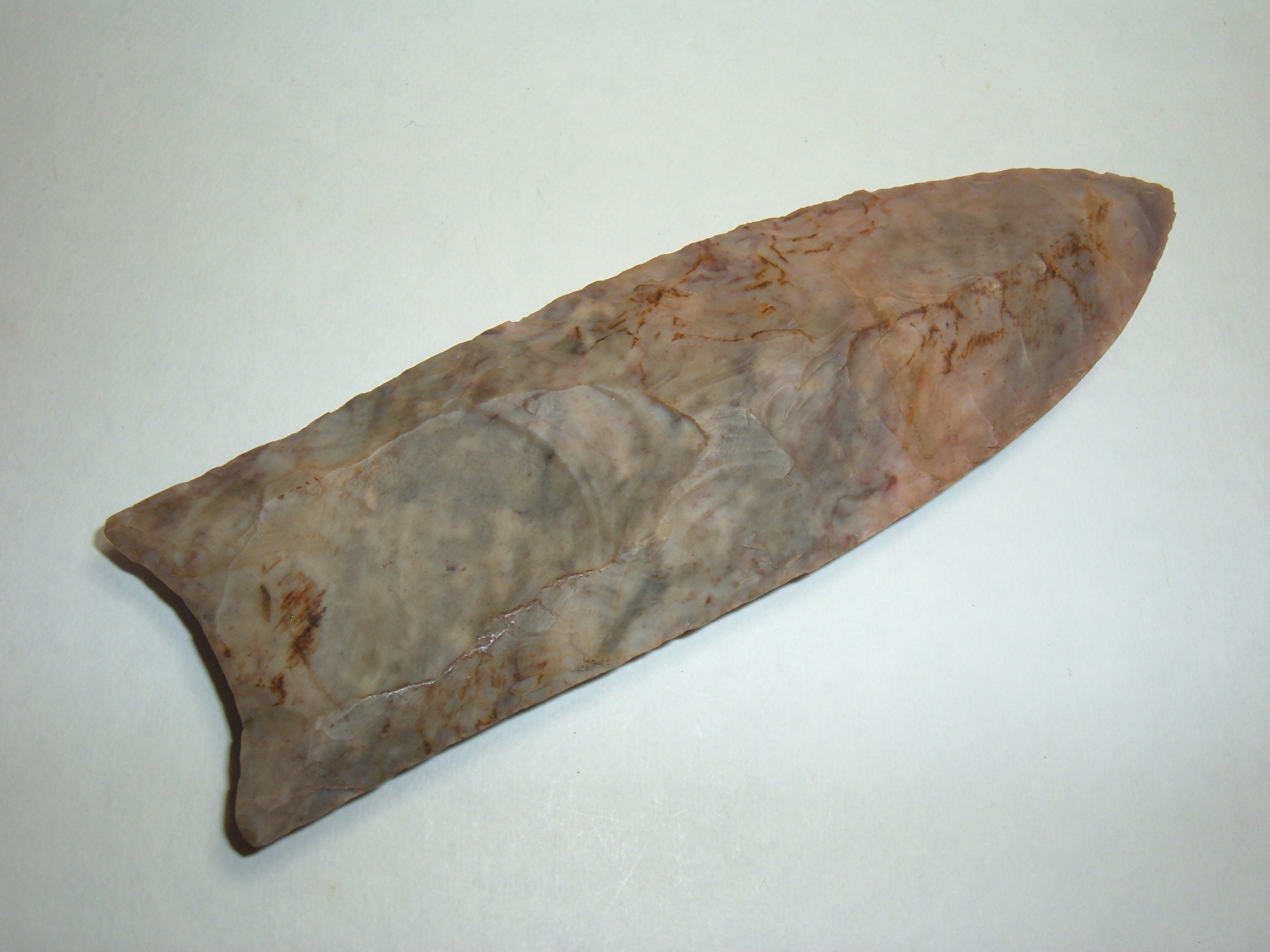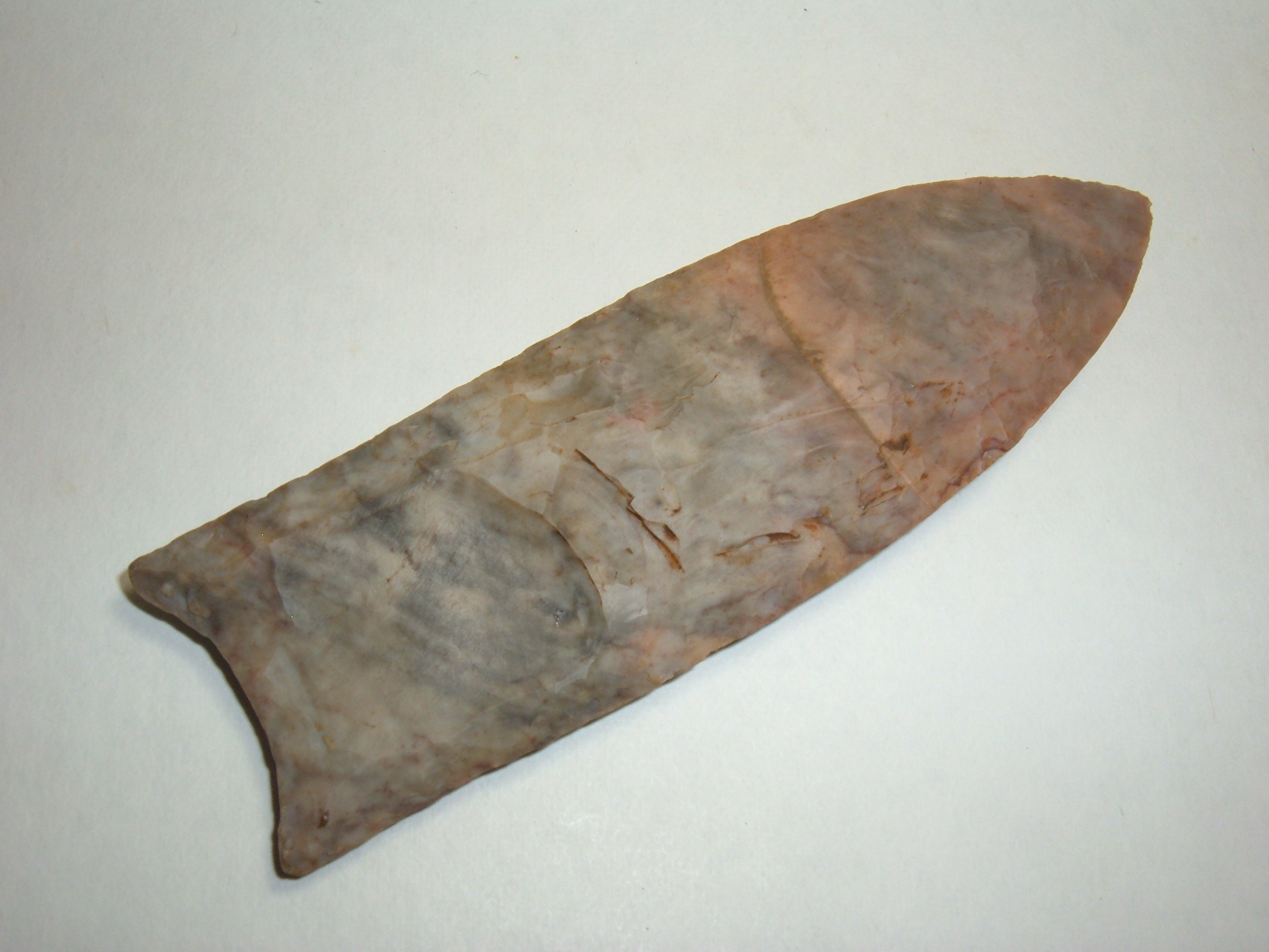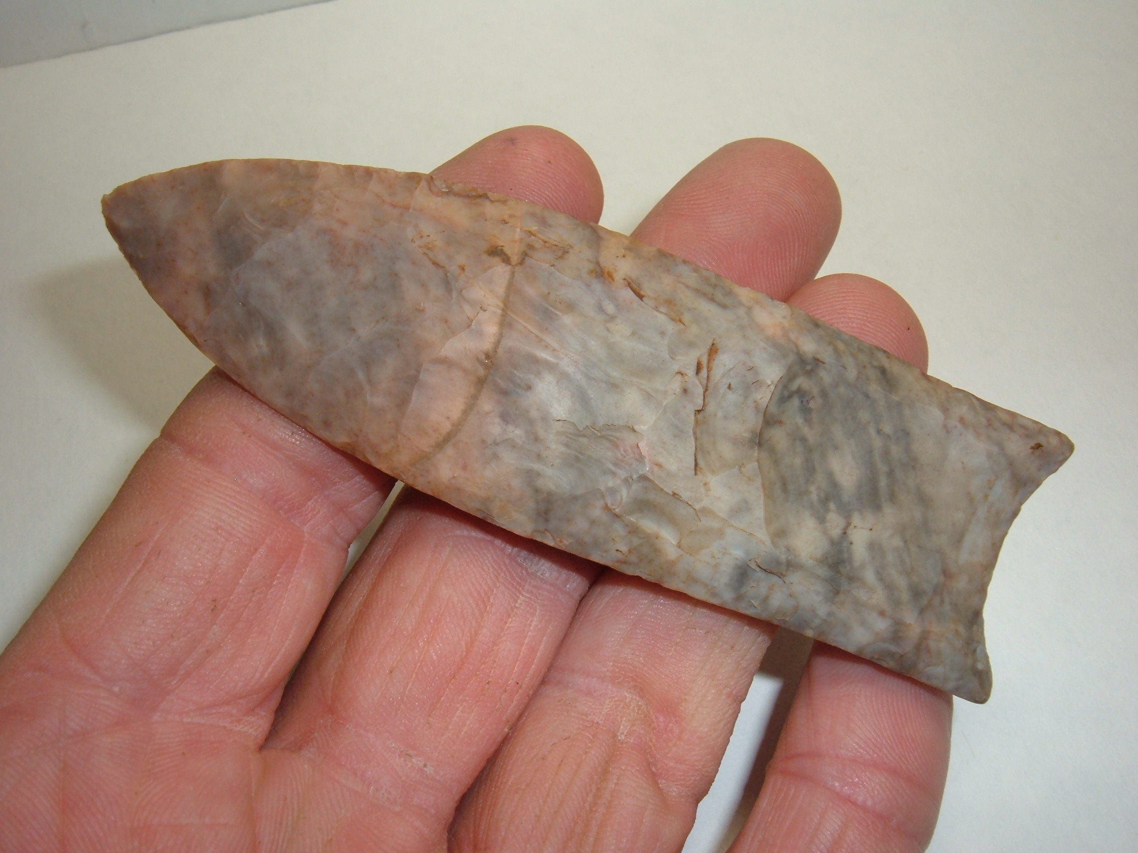 THIS INCREDIBLE OHIO FLUTED CLOVIS IS TRULY TOP OF THER GAME AND EXCEPTIONALLY HIGH GRADE! FOUND IN MORGAN CO.OHIO THIS SUPER RELIC IS EX LENHART AND IS PICTURED IN A OHIO ARCHEOLOGICAL JOURNAL FROM THE 1950'S! IT COMES IN AT A VERY NICE 4" AND HAS A LOT OF PINKISH HUES TO THE FLINT RIDGE FLINT THAT IT WAS MADE FROM!