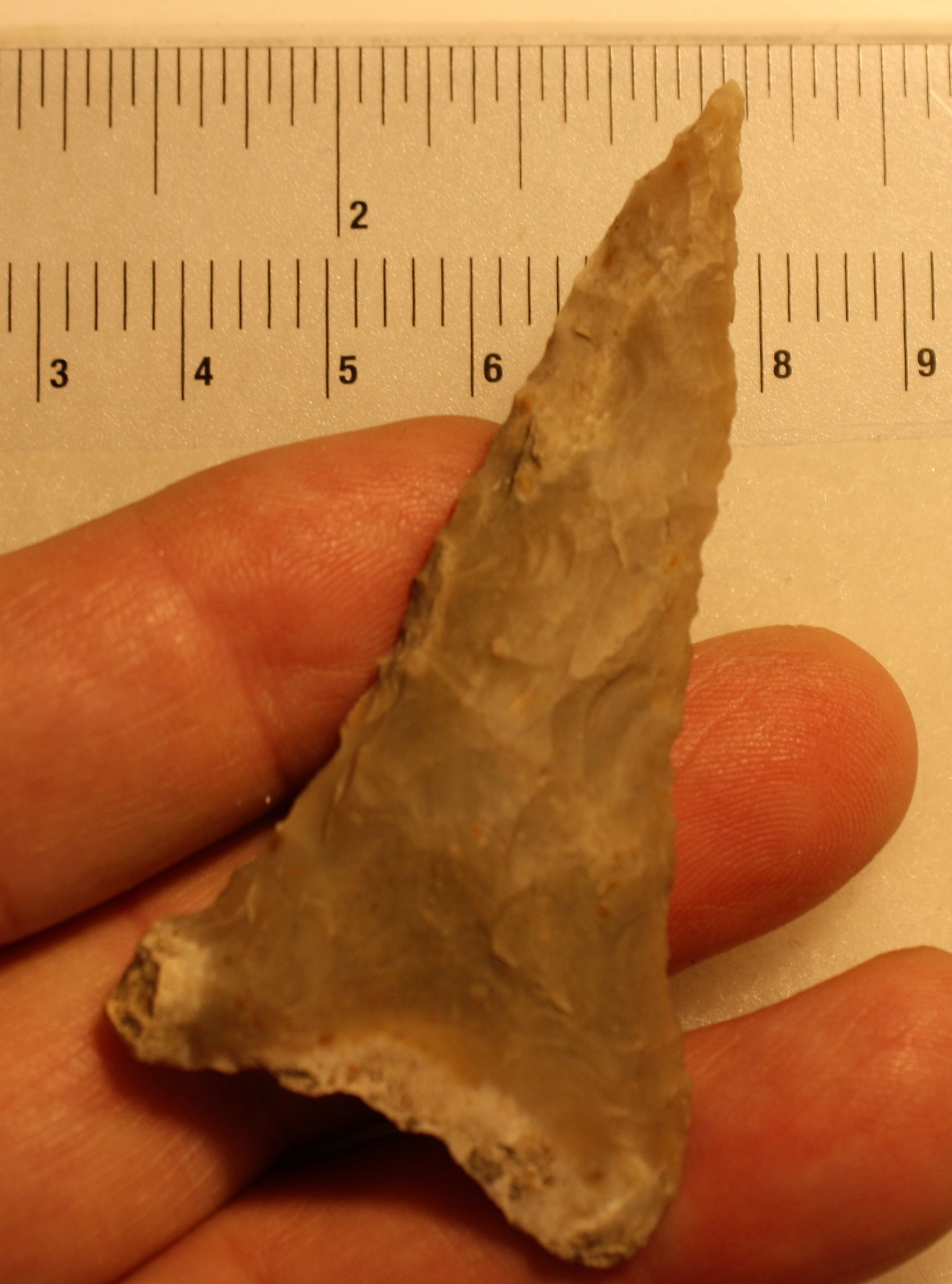 This is one sharp and pointy artifact. It may have been a knife form, but I don't know. It reminds me of a Shark Tooth.