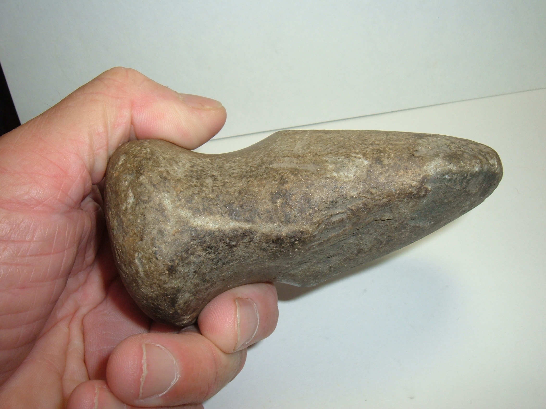 THIS FULL GROOVE AXE WAS FOUND RECENTLY JUST SOUTH OF BUCKEYE LAKE,BORDER OF PERRY AND FAIRFIELD CO'S OHIO. EXCELLENT, 4 1/2" AND MADE OF HARDSTONE!GOOD BIT AND POLL, WHAT LITTLE DAMAGE THERE IS IS ANCIENT! GREAT OHIO RELIC!