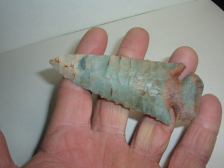 ANYONE WHO COLLECTS POINTS WILL TELL YOU THAT ABOVE ALL THAT COLOR IS KING! IF THAT IS TRUE THIS DOVETAIL MUST BE THE KING OF THE GREEN DOVES! FOUND IN PUTNAM CO.OHIO THIS BIG 3 15/16" POINT IS EX DICK COULTER WHO NEEDS LITTLE INTRODUCTION AMONG OHIO RELIC COLLECTORS!INCREDIBLE FLAKING TO THIS VERY VERY HIGH GRADE POINT!THE COLOR IS UNBELIEVEABLE HAVING A LOAD OF GREEN, ORANGE AND EVEN A BIT OF BLUE TO THE EXOTIC FLINT RIDGE FLINT !