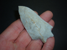 OFFERED HERE IS A VERY FINE CLASSIC HOPEWELL POINT, 2 1/2" AND FOUND IN SHELBY CO.OHIO, EXCEPTIONALLY FLAKED AND MADE FROM JET BLACK COSHOCTON FLINT,A REALLY NICE EXAMPLE!