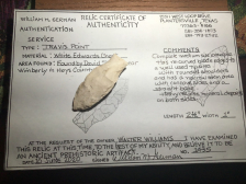 Fine point out of the Shand collection from Hays county. The edges show heavy use wear. The base is thinned. It comes with a Bill German coa and I have the shipping.