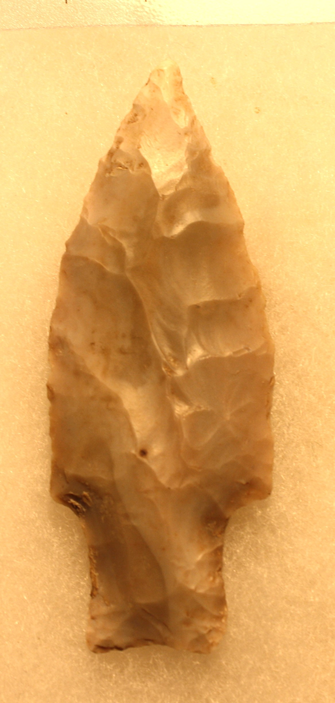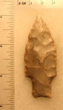 It appears to be made of a light Edwards Gray Chert with a lot of white patina getting stronger to a white tip.