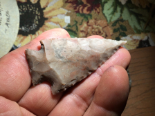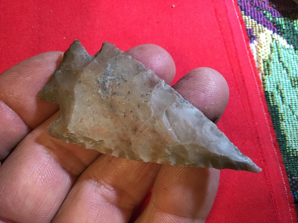 This one is very unique because careful examinations shows it was anciently resharpened while hafted. It has a fine tip, thin, and well patinated. I have the shipping and will guarantee authenticity and satisfaction.