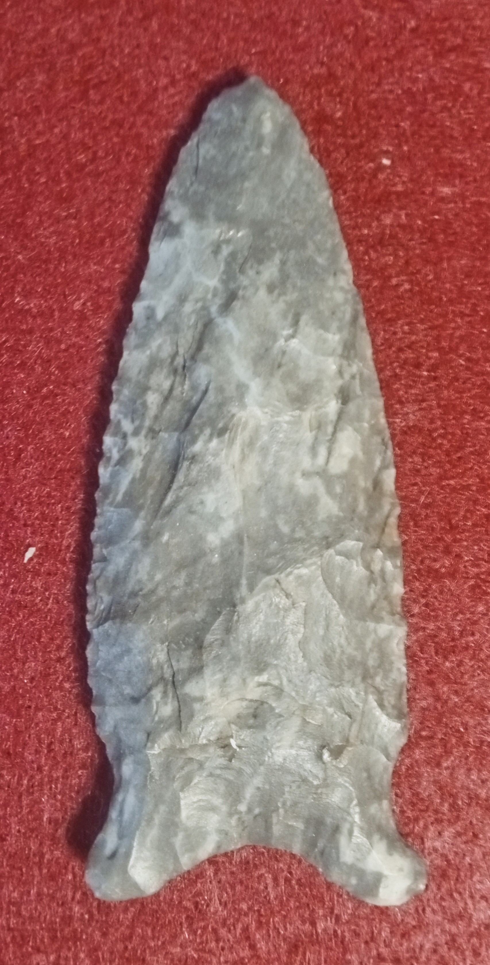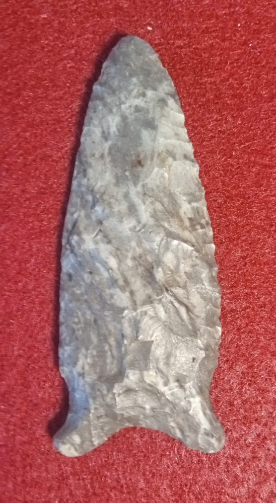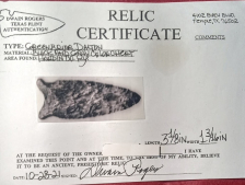 This Greenbriar Dalton was found in Hardin Co., Kentucky and is made from a rare, blue Harrodsburg chert. This artifact comes with a Dwain Rogers COA. A top-end artifact for type and material.