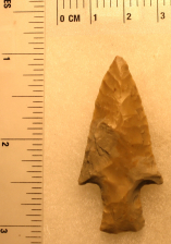 This Evant was found in Lampasas County, Texas. They used to be called San Gabriel Points. The material appears to be a cobble from the Lampasas/ San Gabriel River Drainage. These are said to be coeval with the Nolan form and predate Pedernales.