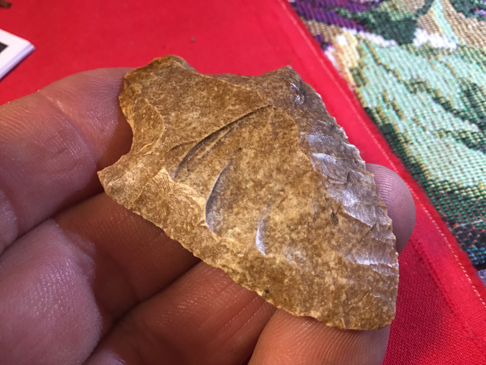 This is very nice Marion from Florida that has heavy patina with a very distinctive thinning flake that makes the point appear to be fluted. It has very precise pressure flaking on both lateral edges to a nice tip an rounded base. I have the shipping and will guarantee authenticity and satisfaction.