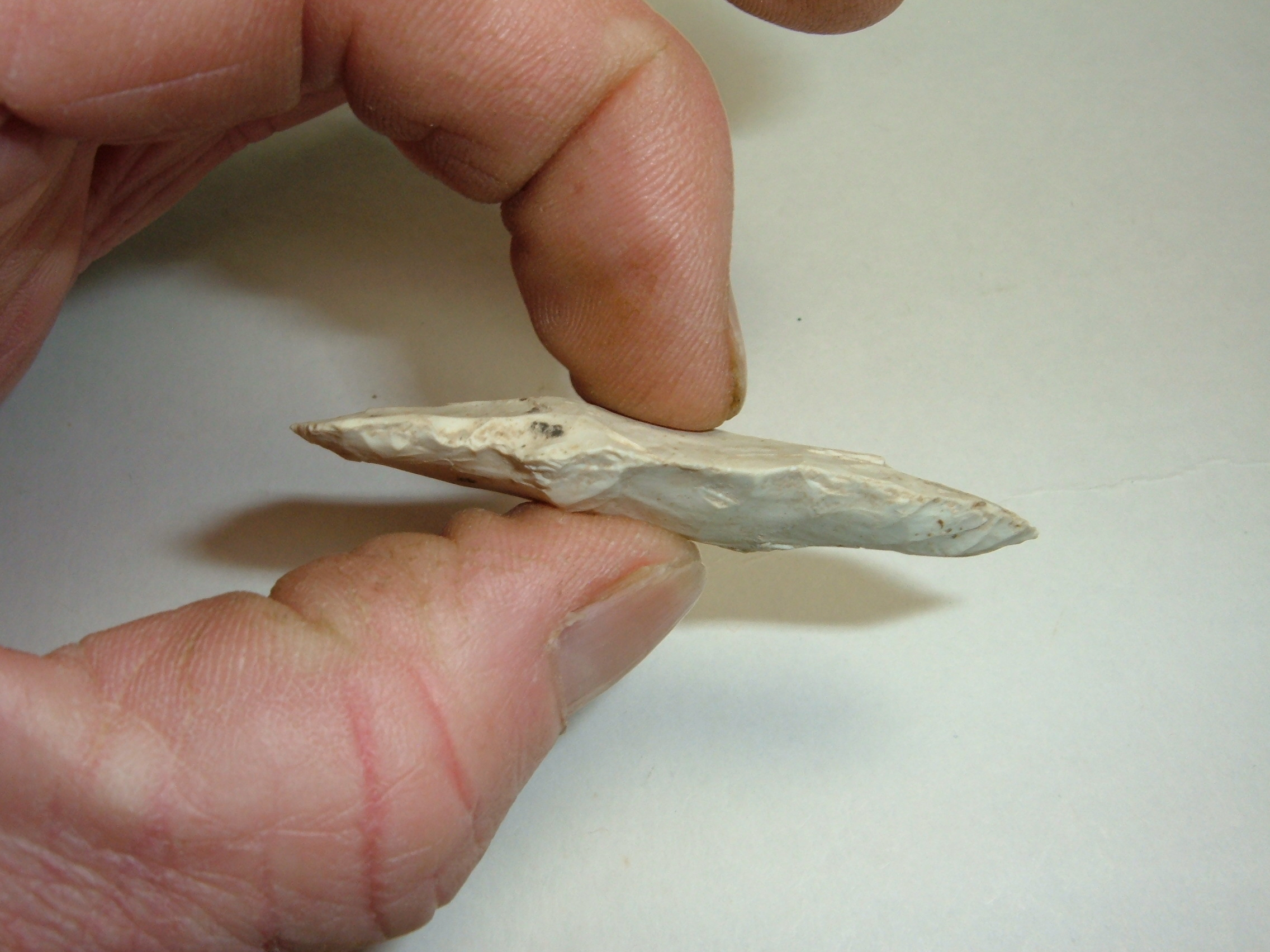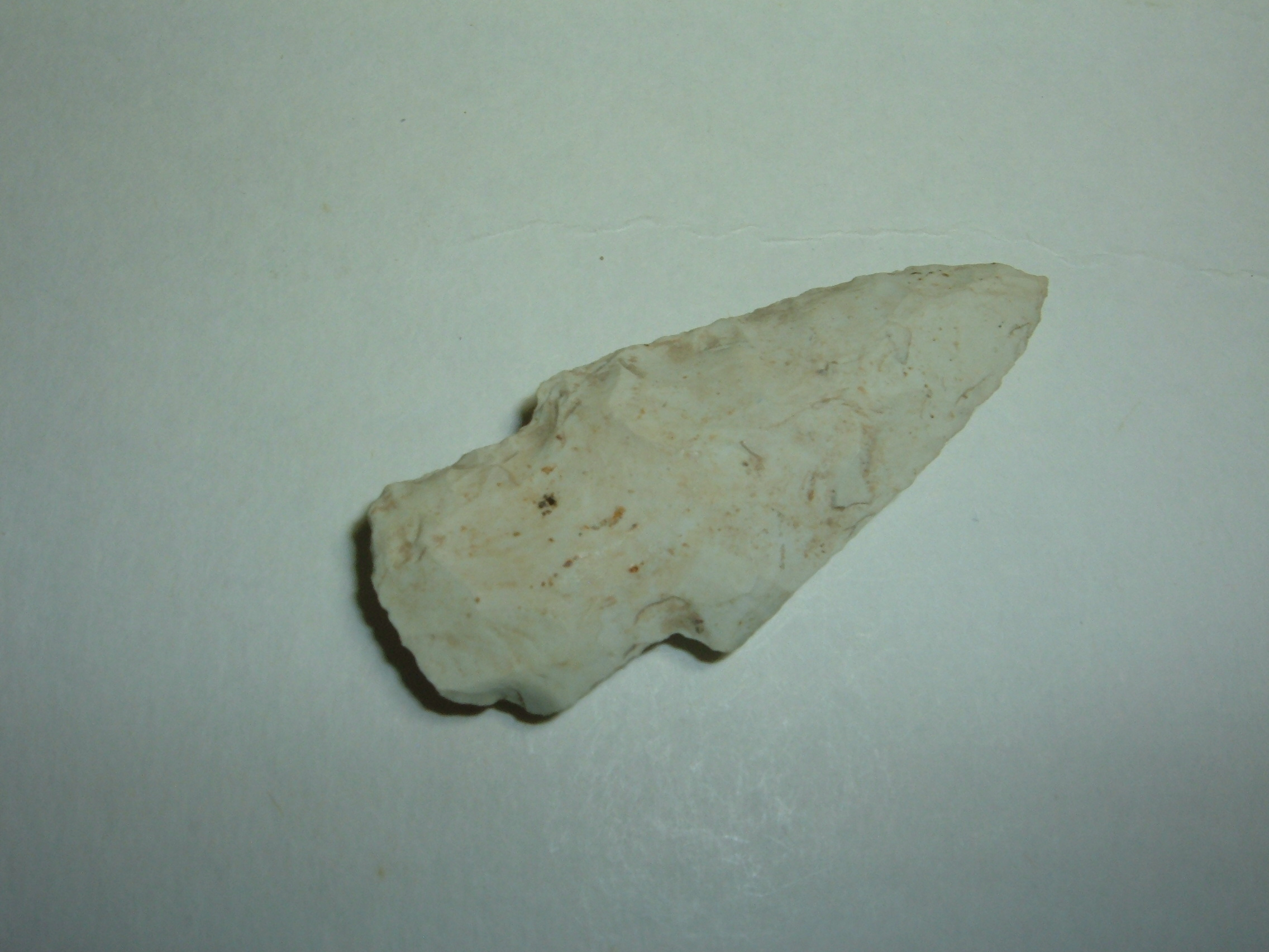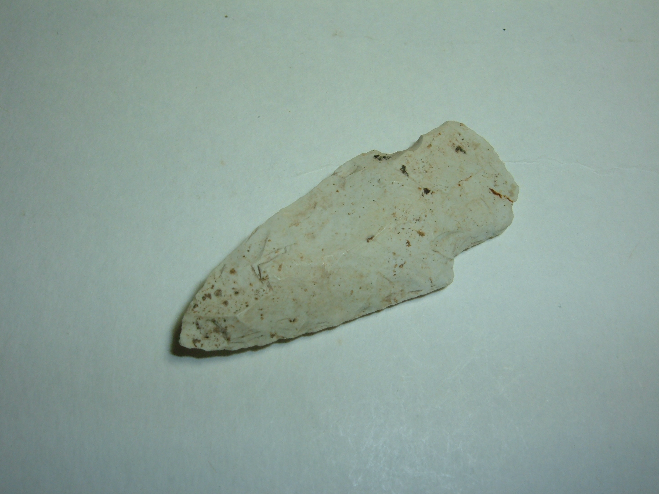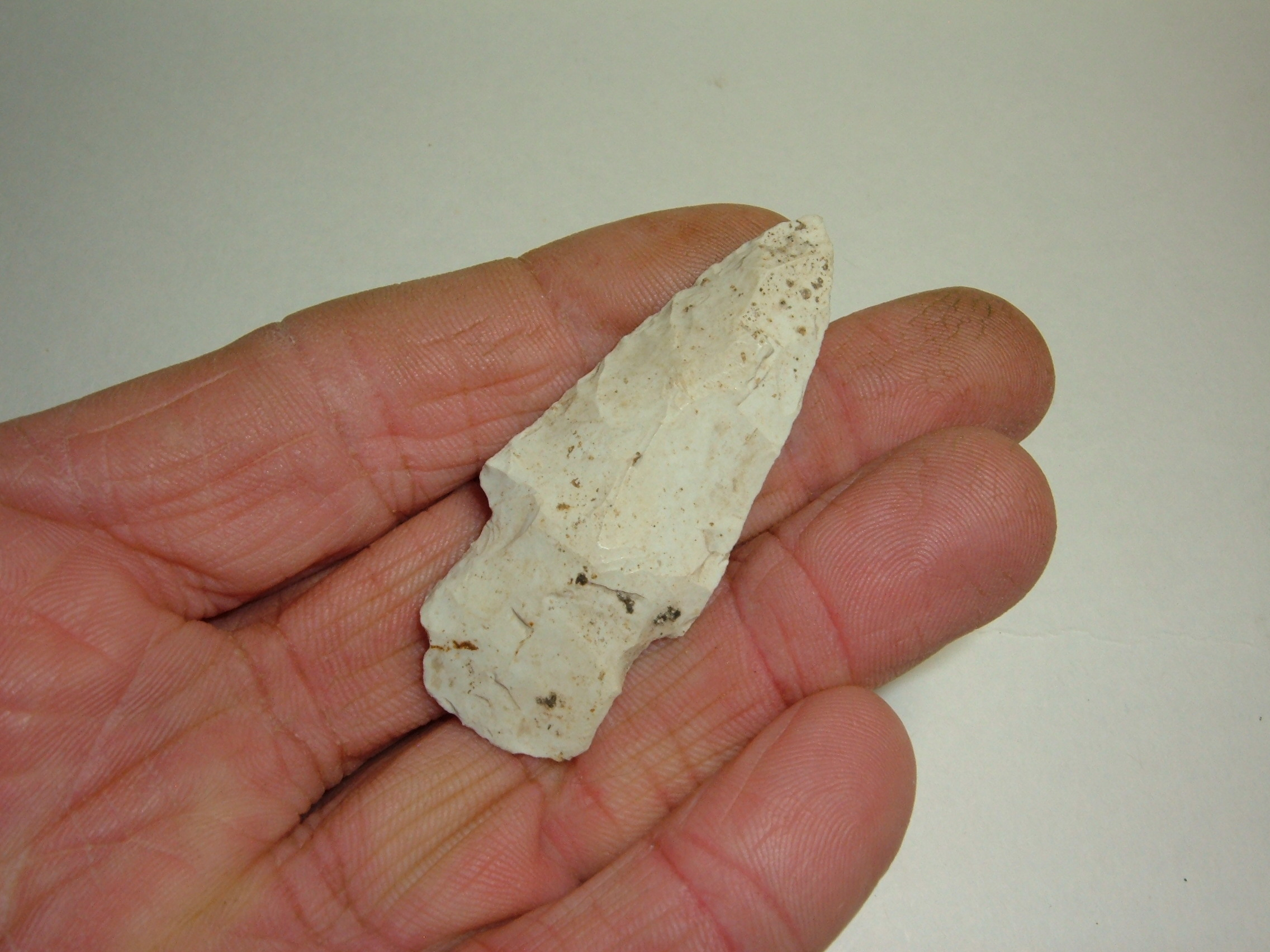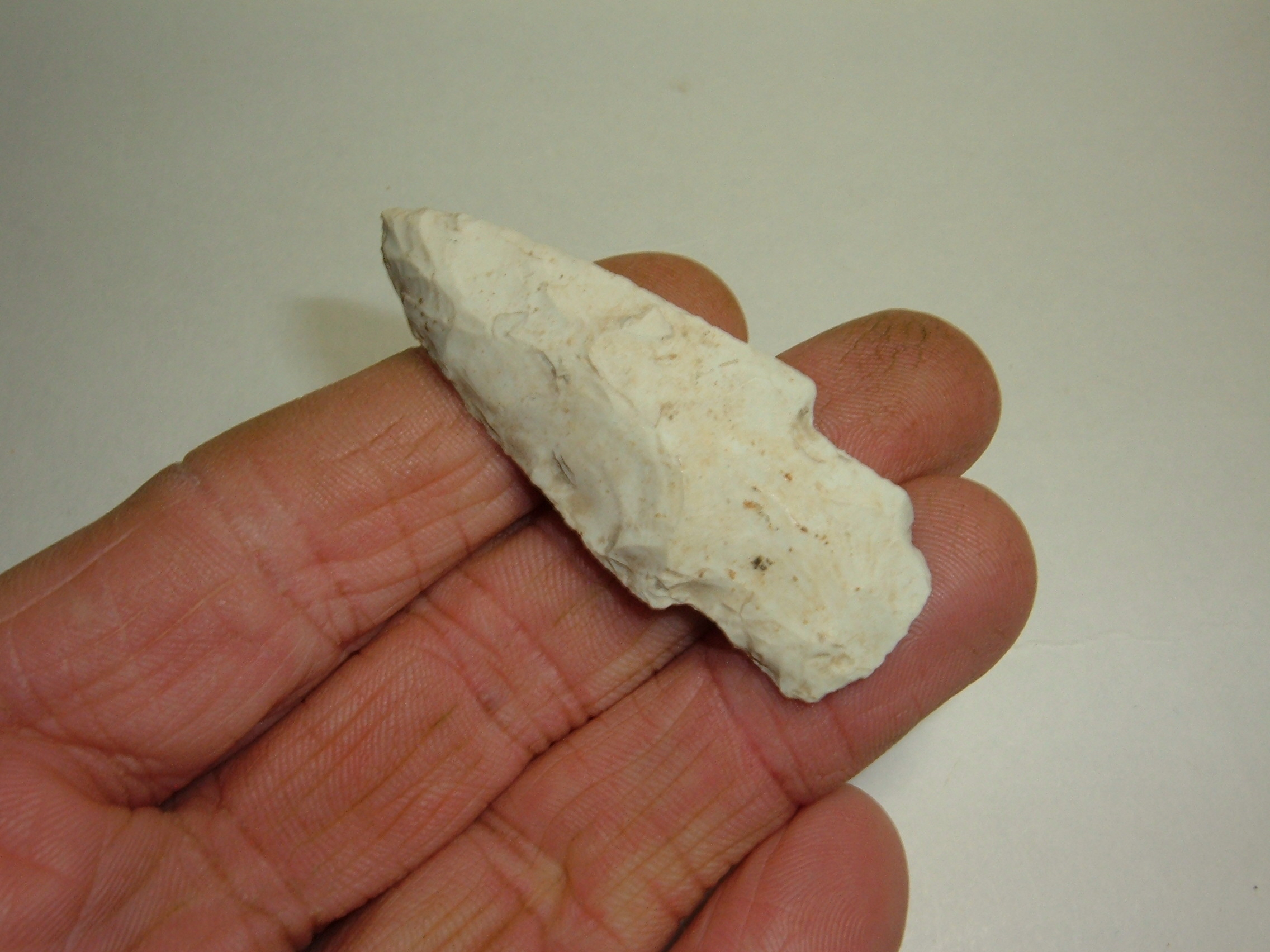THIS NICE EARLY PALEO STEMMED LANCE WAS FOUND BY JIM BARKER IN COSHOCTON CO.OHIO AND IS MADE FROM LOGAN CO.CHERT! IT IS 2 1/4" AND IS A NICE EARLY EXAMPLE
