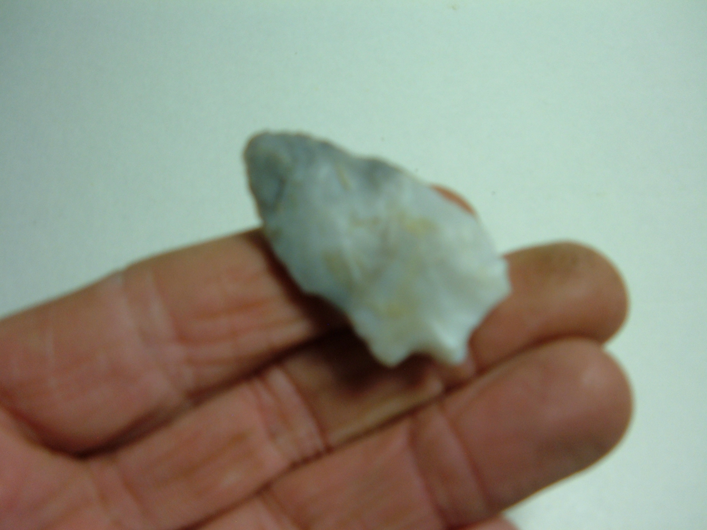 HERE IS A NICE EXAMPLE OF A VERY COLLECTABLE OHIO POINT TYPE! THIS PALEO TRANSITIONAL, 1 5/8" DISPLAYS FLUTING ON BOTH SIDES AT THE BASE AND WAS FOUND IN DELAWARE CO.OHIO ON THE TONY BECK FARM! MATERIAL IS HIGHLY TRANSLUCENT TWO TONE FLINT RIDGE CHALCEDONY, THIS IS AN AWSOME EARLY POINT TYPE!