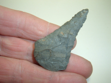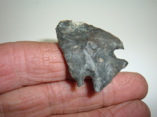 THIS EXCELLENT ARCHAIC STILLWELL WAS FOUND IN LOGAN CO.OHIO AND WAS FOUND ON THE DOUGLAS FARM THERE! IT IS 2 1/4.WELL FLAKED AND IS MADE FROM FINE MOTTLED COSHOCTON FLINT,SUPER ARCHAIC EXAMPLE!