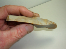 TRULY THIS IS A MONSTER UNIFACE KNIFE FOUND IN LICKING CO.OHIOIT IS FULLY 4" LONG! MADE FROM BEAUTIFUL FLINT RIDGE CHALCEDONY IT IS REALLY A WONDERFUL EXAMPLE!