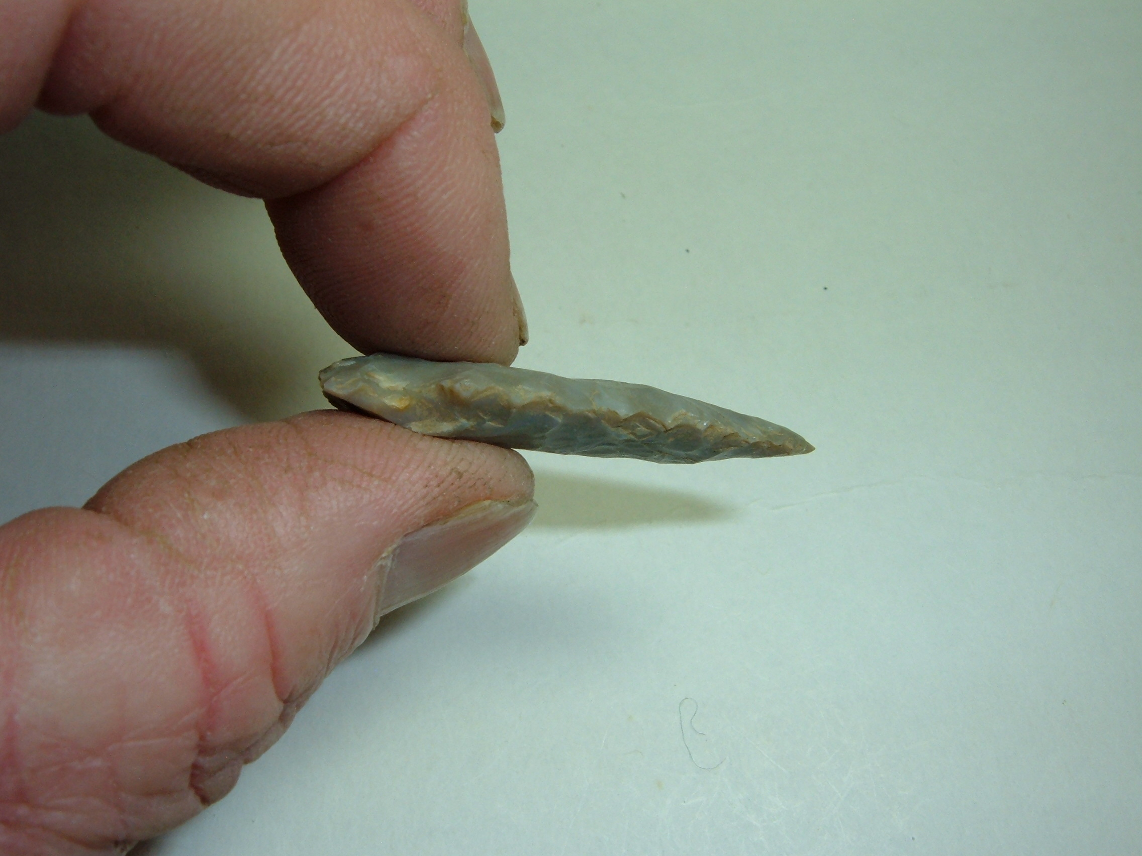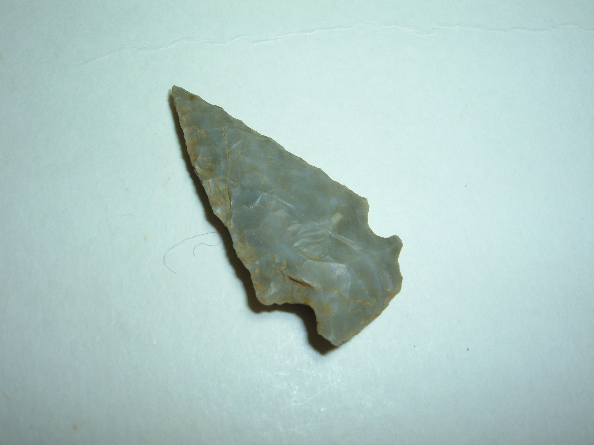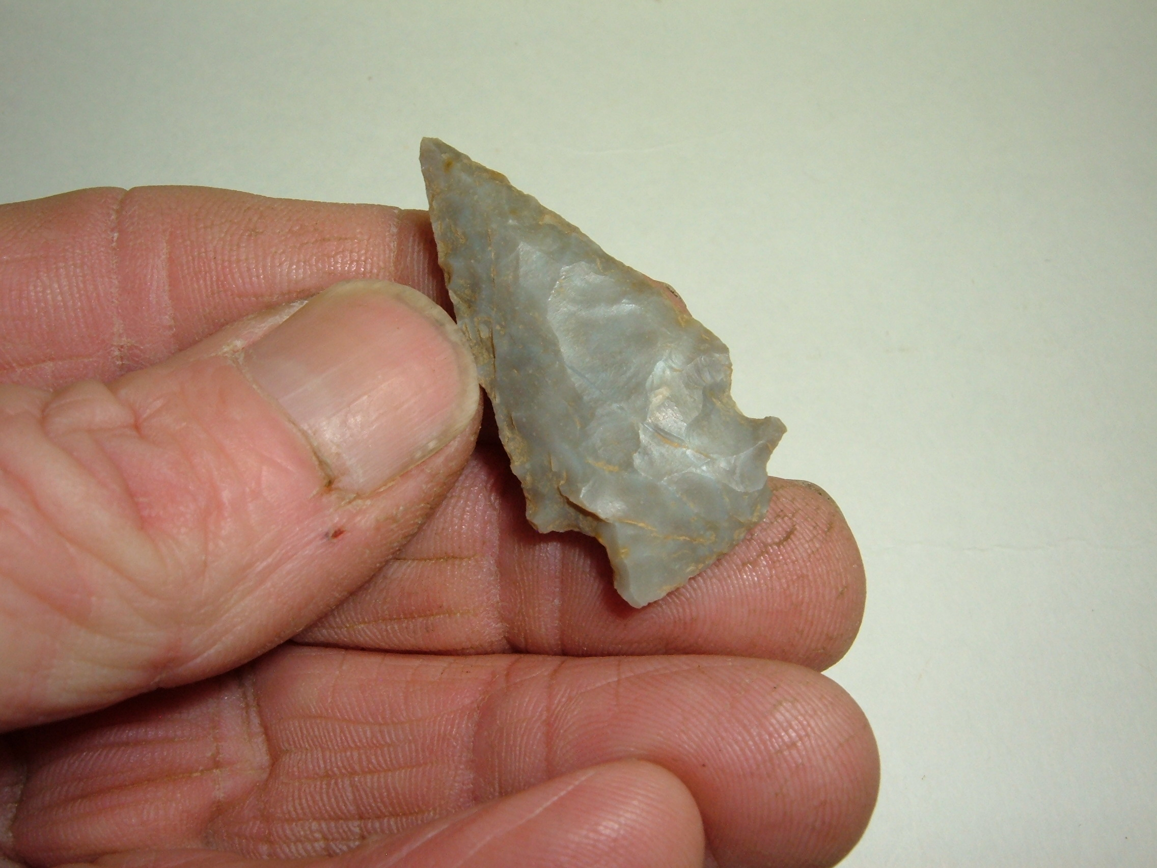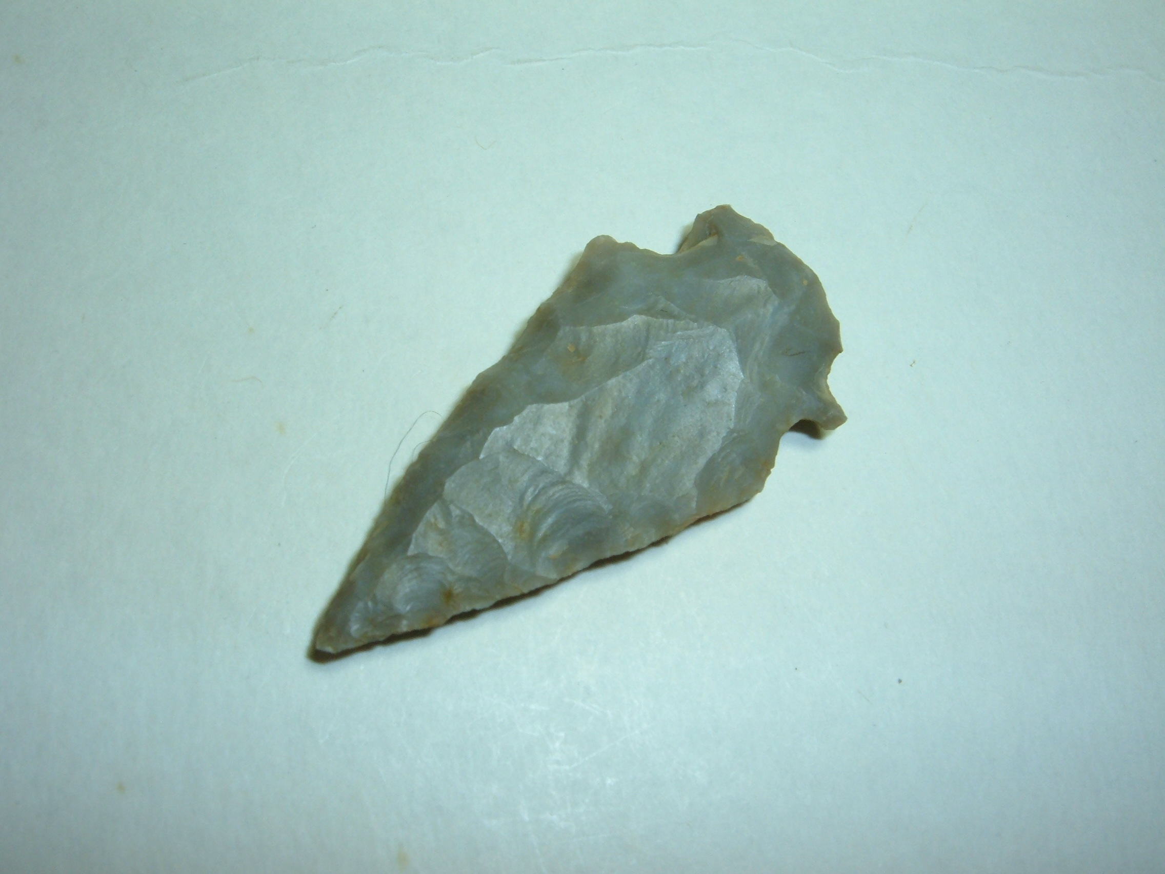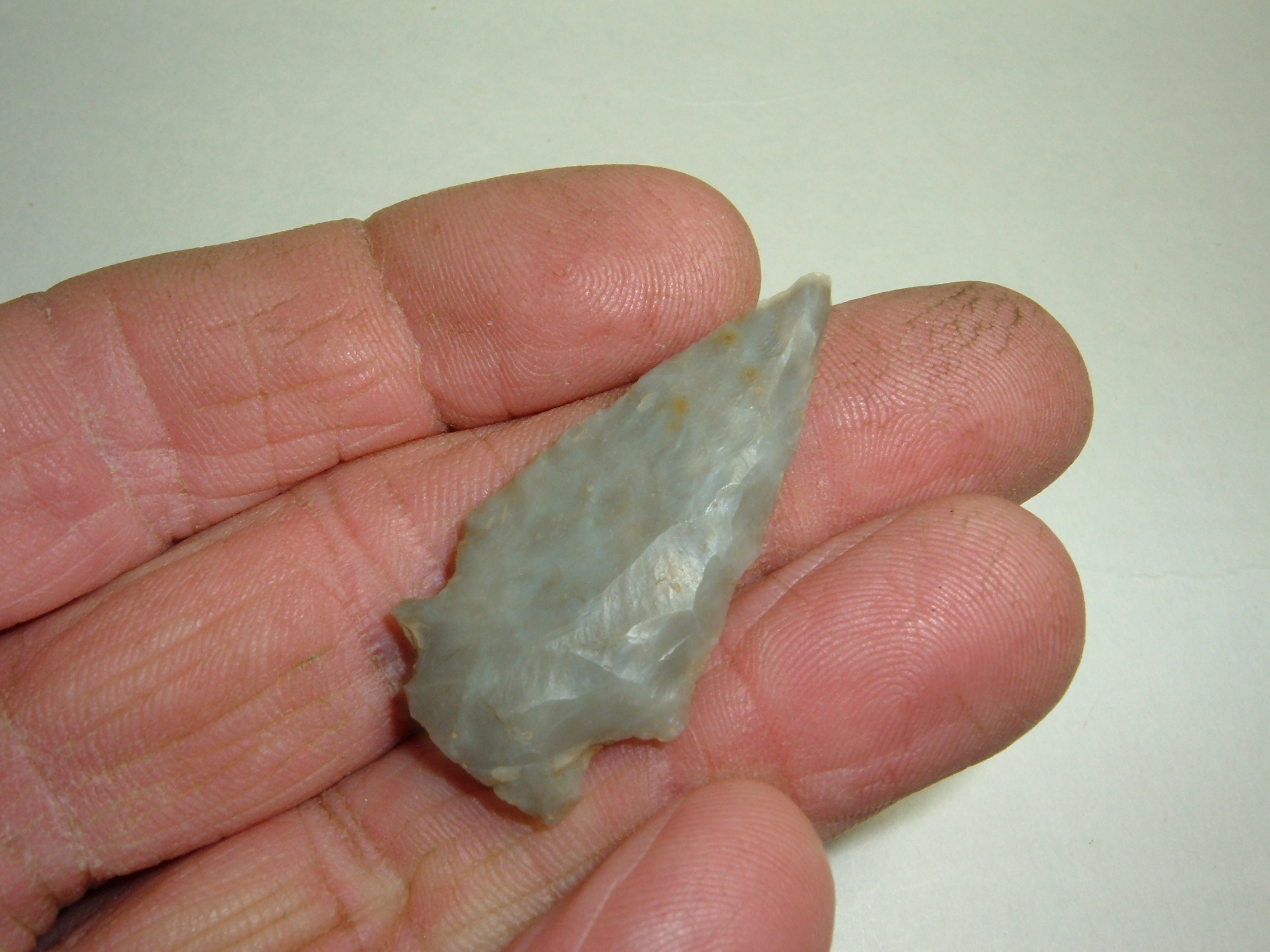 THIS ARCHAIC RE-NOTCHED POINT IS BEAUTIFUL AND A RATHER RARE OHIO TYPE TO COME BY!IT WAS FOUND IN TUSCWARAS CO.OHIO BY JIM BARKER AND MEASURES 1 5/8"! MADE FROM GEORGEOUS SEMI TRANSLUCENT FLINT RIDGE CHALCEDONY, YOU DON'T FIND ALOT OF THESE AROUND!