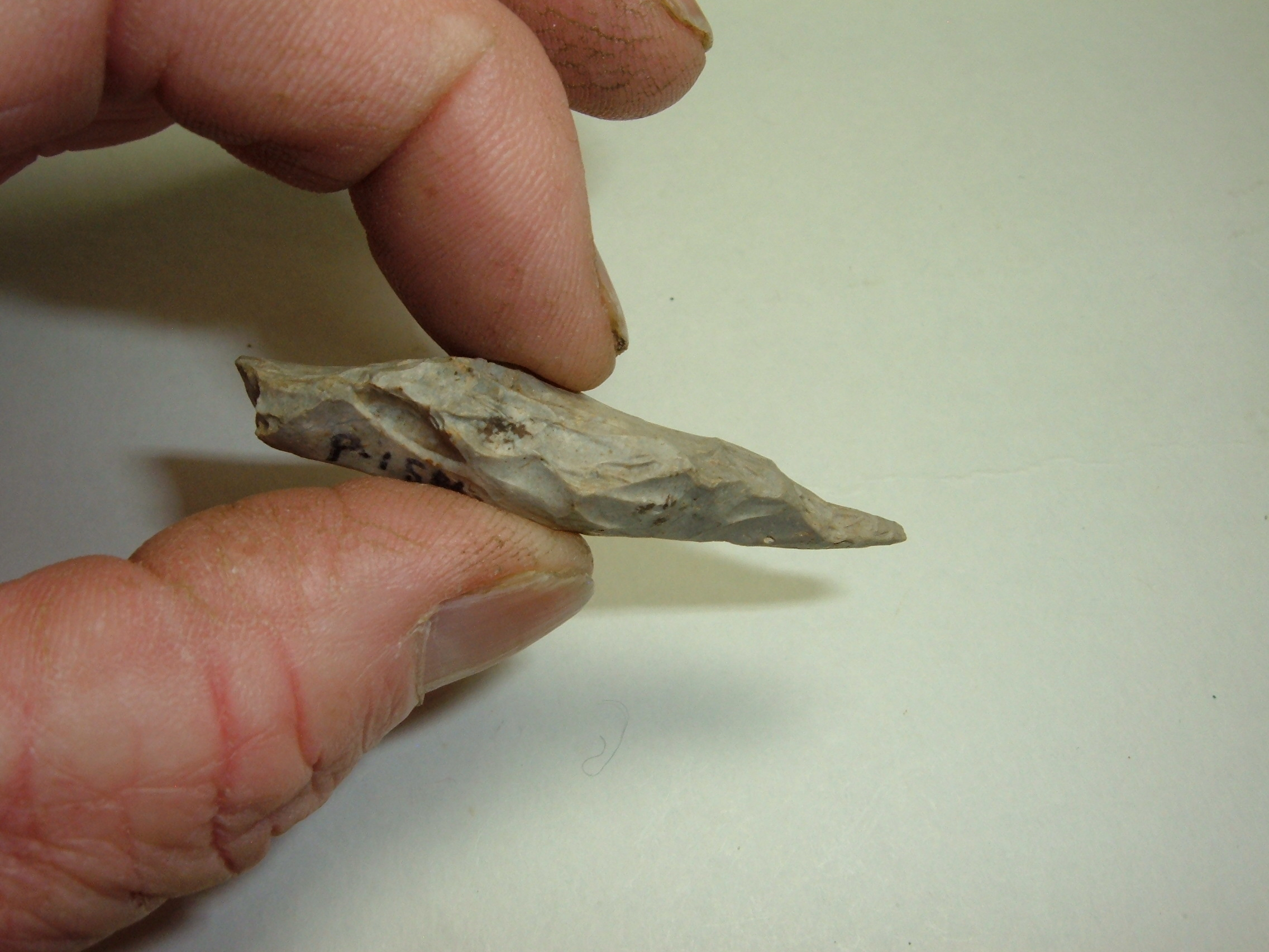 THIS NICE PALEO DRILL WAS FOUND IN TUSCAWARAS CO.OHIO BY JIM BARKER WHO LIVED IN TUSCAWARAS COUNTY! IT MEASURES 2 3/16" AND IS MADE FROM PATINATED FLINT RIDGE FLINT,A NICE EARLY PALEO RELIC!