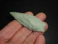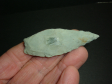 HERE WE HAVE A KILLER PALEO LANCE THAT WAS FOUND ON THE FARM OF JON AND GEOFF ROTH ON THE MUSKINGUM /LICKING CO.BORDER. IT IS 2 3/4"AND IS MADE FROM PATINATED DELAWARE CHERT. AND CAME OUT OF A CONVERSE AUCTION SOME YEARS AGO. VERY NICE SHAPE!