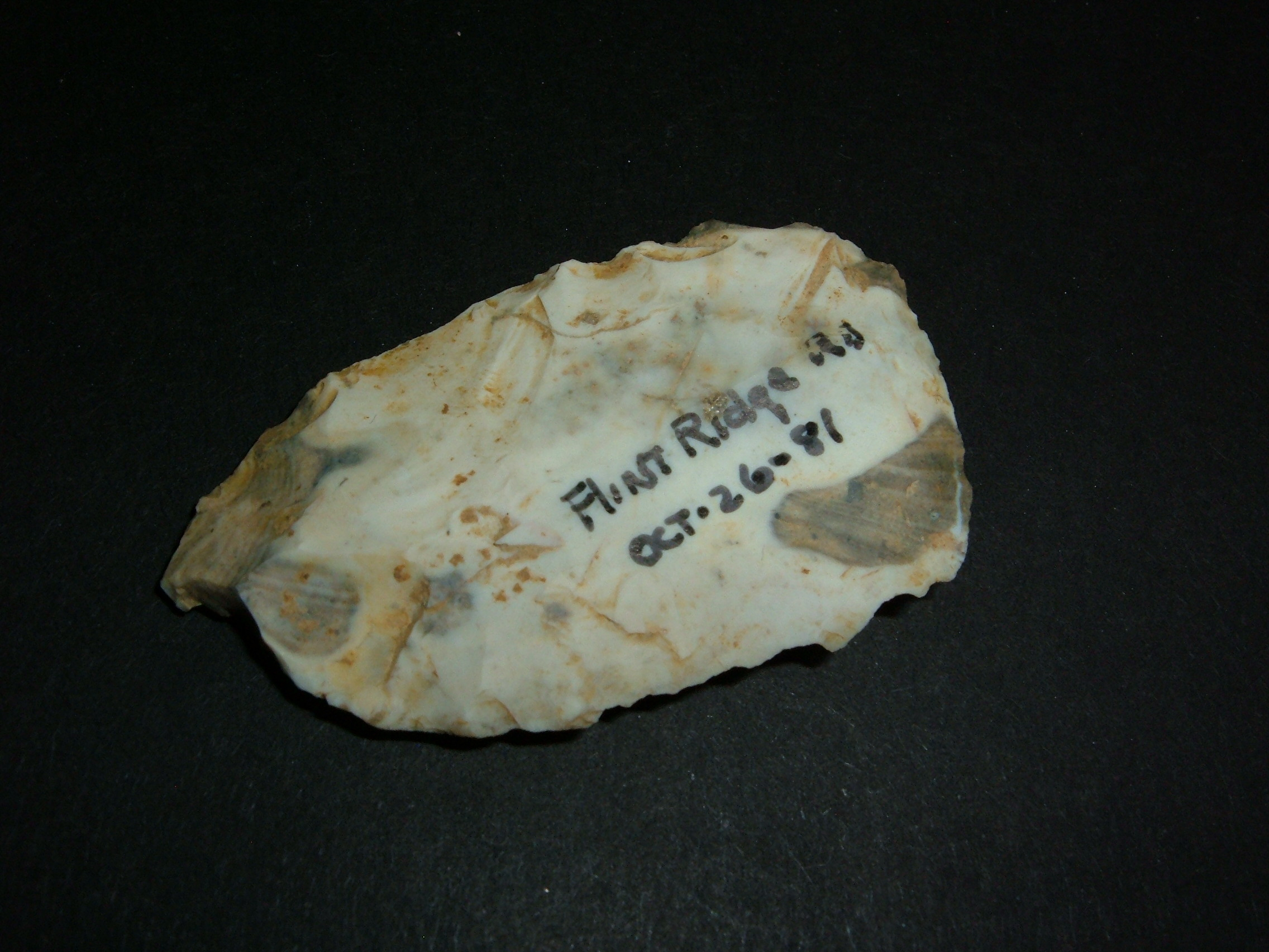OFFERED HERE IS A VERY NICE HOPEWELL CACHE BLADE, FOUND INLICKING CO.OHIO BY ROBERT LOGAN AND MEASURES 2 1/8"! IT IS MADE FROM COLORFUL FLINT RIDGE FLINT AND WAS FOUND OCTOBER 26TH 1981.
