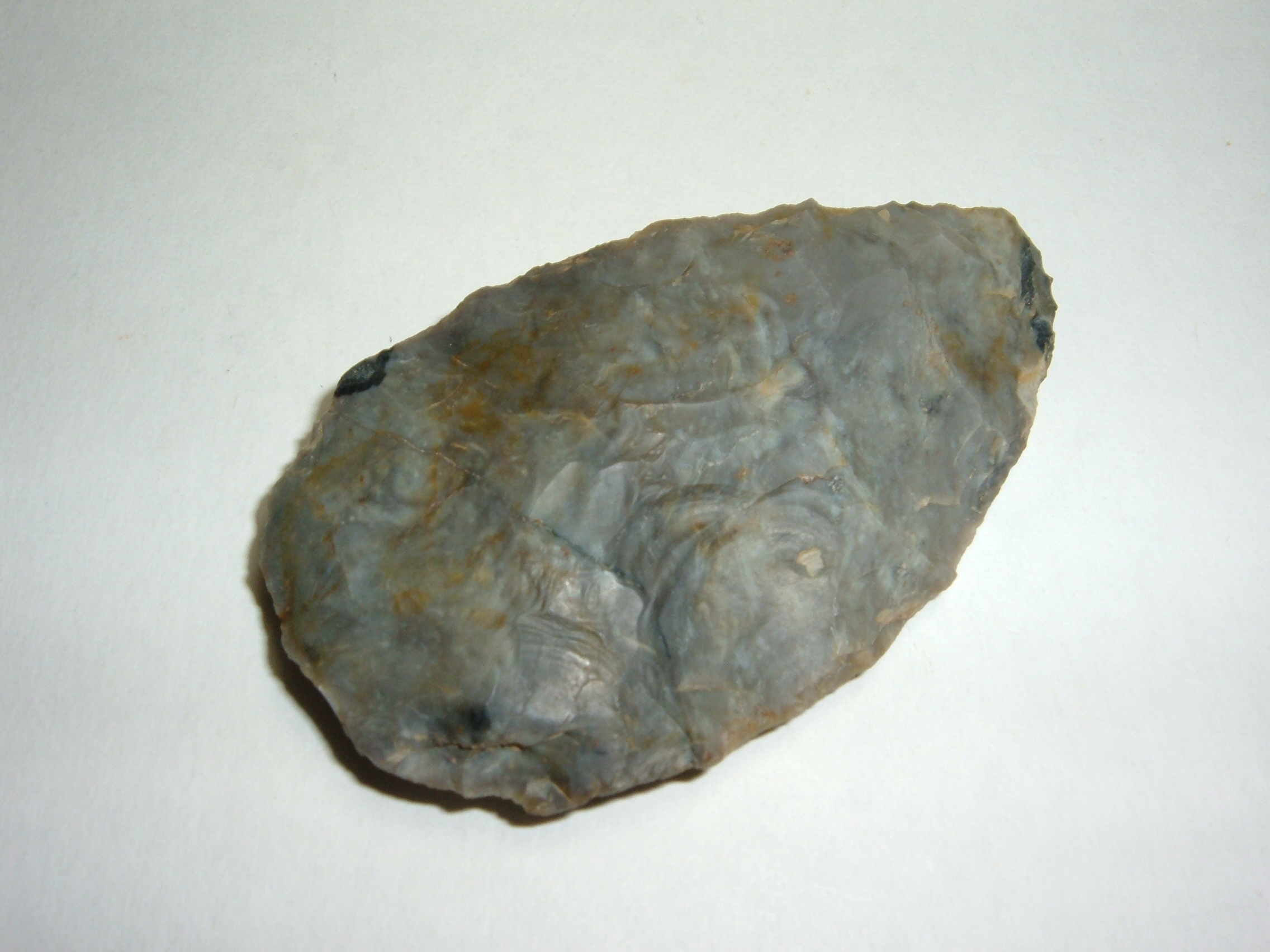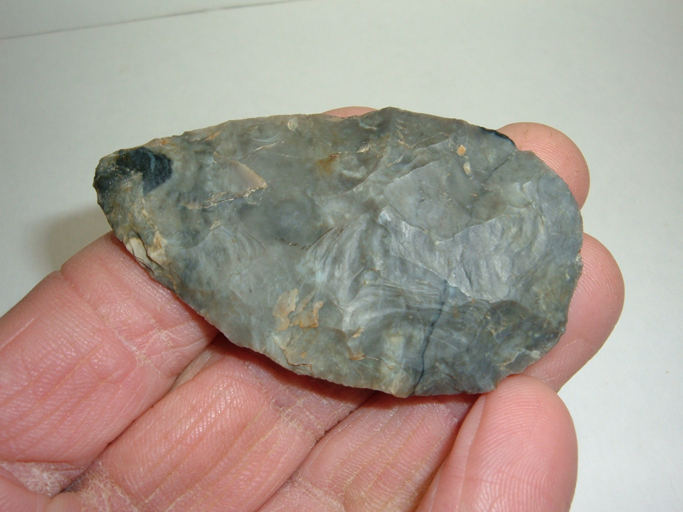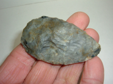 FROM OUR EXTENSIVE COLLECTIONS WE OFFER THIS VERY FINE ,EX BOB CONVERSE ADENA CACHE BLADE,FOUND IN LICKING CO.OHIO. IT MEASURES 2 1/2"AND IS MADE OF BEAUTIFUL FLINT RIDGE FLINT VERY NICE AND MUCH NICER KNOWING BOB ONCE OWNED IT!