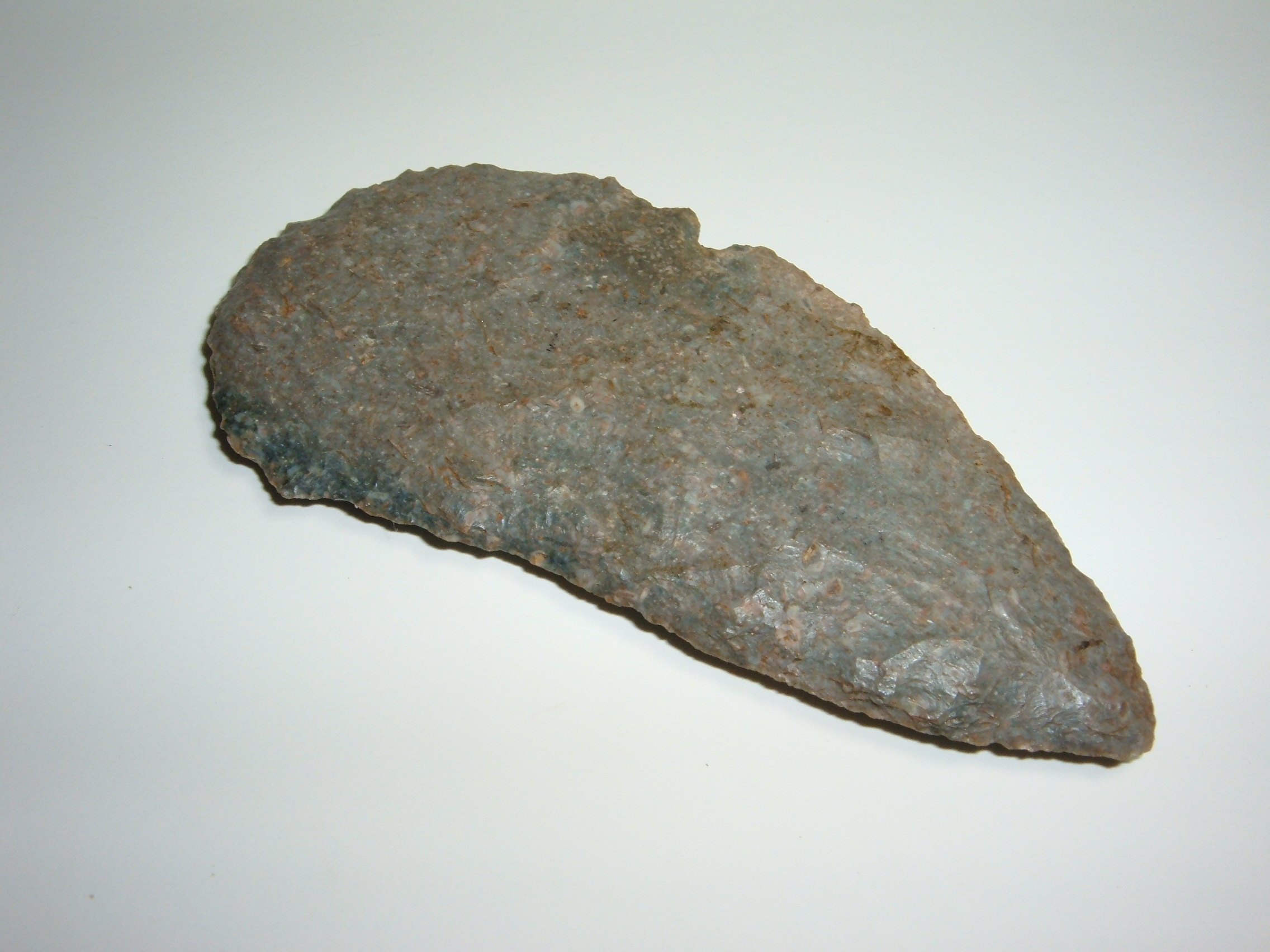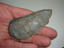 OFFERED HERE IS A REALLY FINE PALEO CRESCENT KNIFE FOUND IN OTTAWA CO.OHIO AND IS 3 1/2"!MADE FROM MOTTLED COSHOCTON ,THESE PALEO CURVED KNIVES ARE NEVER COMMON AND A GREAT EARLY COLLECTABLE POINT TYPE!