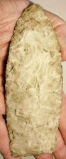This highly beveled Dovetail is made out of Hornstone. It has been reworked several times reducing its length but still retains the coveted Dovetail form and base. It was found in Indiana and comes with a Josh Davis COA.
